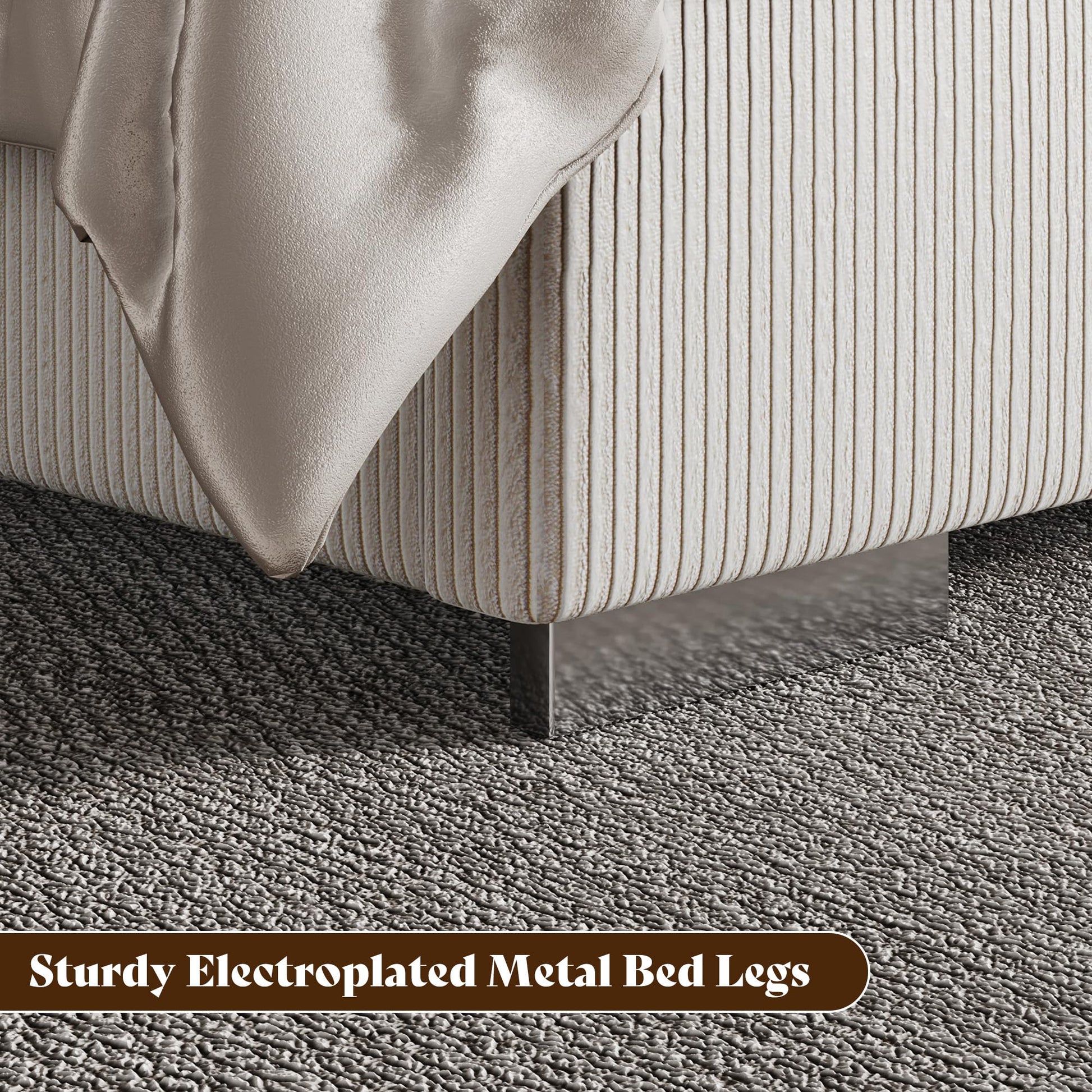 - Soft Corduroy Upholstery: The headboard, footboard and side rails are padded with corduroy upholstery, providing a luxury texture that enhances the overall appeal of the modern bed frame