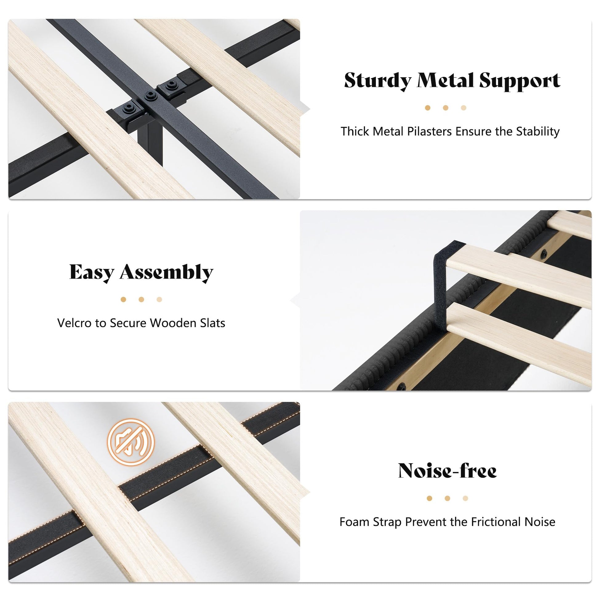 - Design Details&Quiet Sleep: Electroplated metal strip to fix the wingback which adds a sense of elegance. The Silent sponge on metal beams will reduce the friction to avoid noises