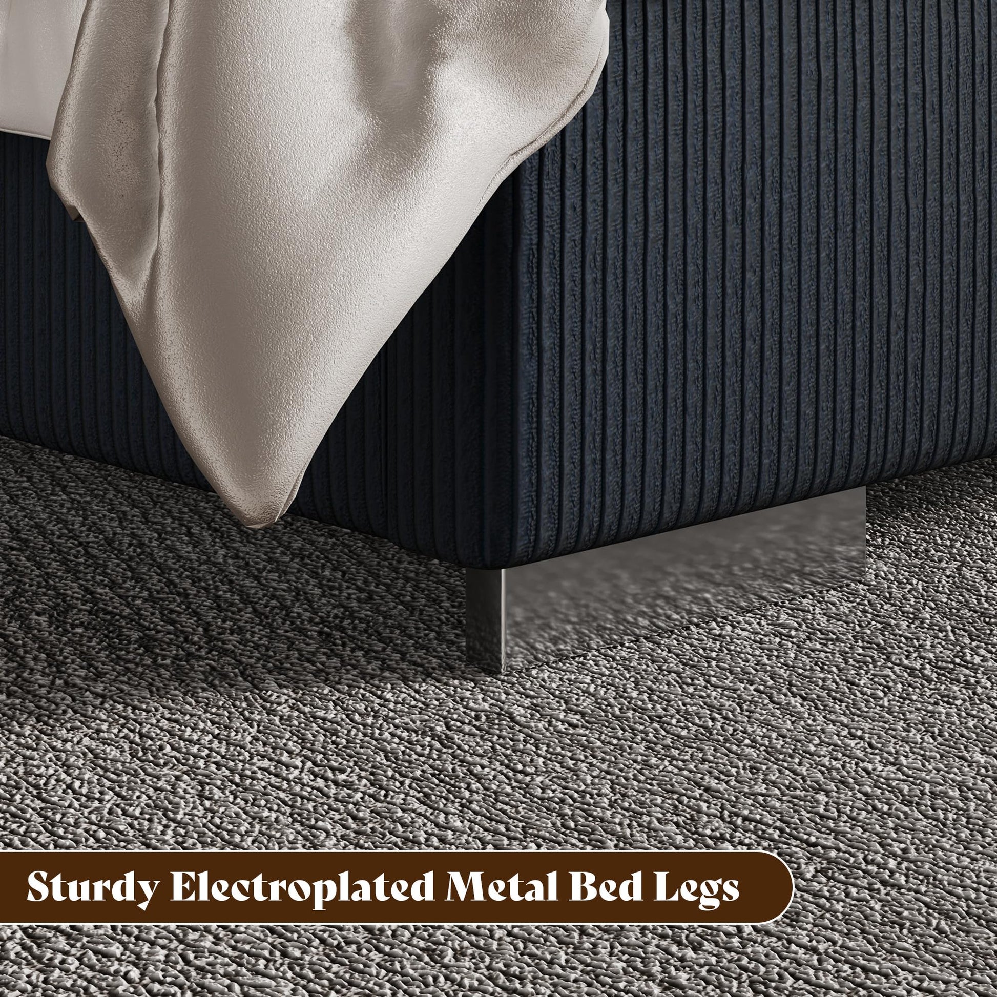 - Soft Corduroy Upholstery: The headboard, footboard and side rails are padded with corduroy upholstery, providing a luxury texture that enhances the overall appeal of the modern bed frame