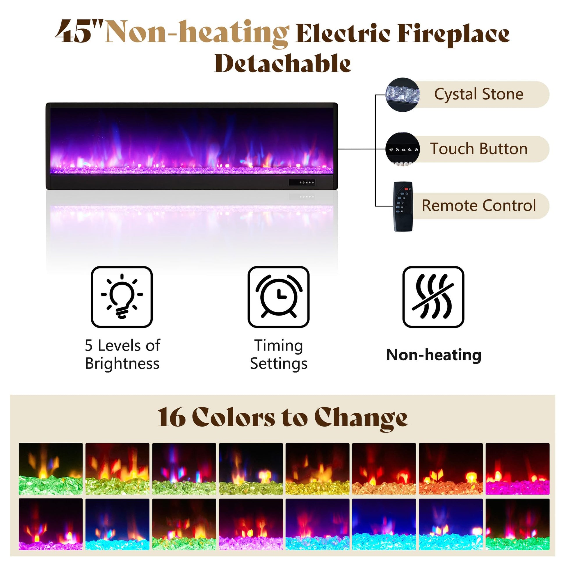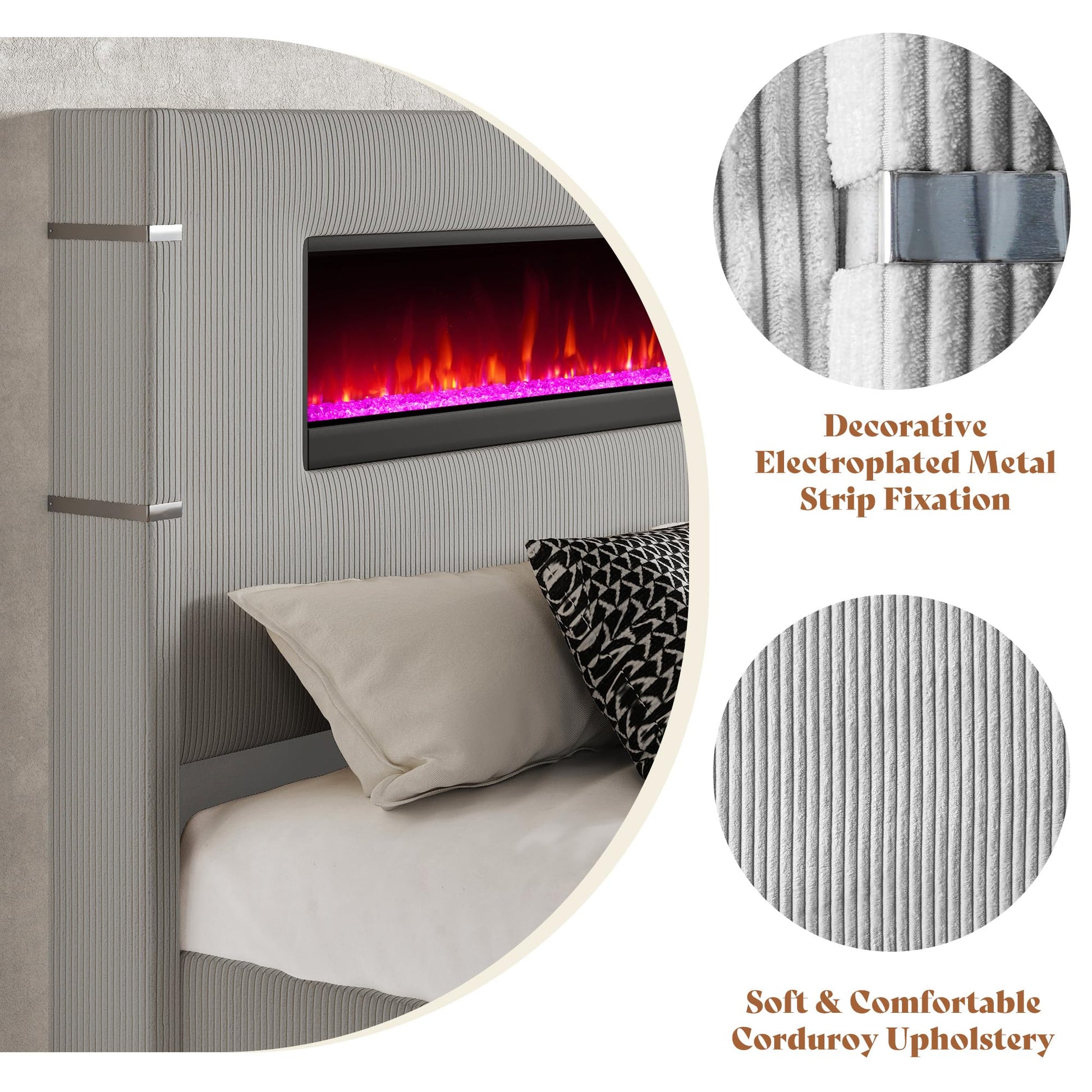 - Fireplace Bed Frame: 55“ Non-heating electric fireplace features 16-color flame and crystals with five levels of adjustable brightness. Comes with a handy remote control for convenience