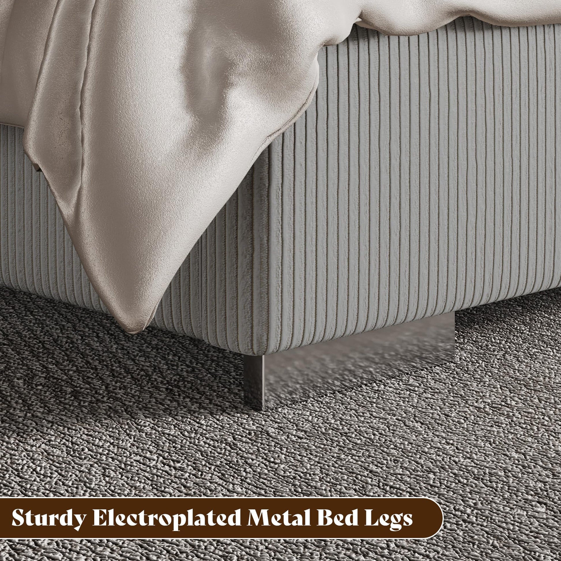 - Soft Corduroy Upholstery: The headboard, footboard and side rails are padded with corduroy upholstery, providing a luxury texture that enhances the overall appeal of the modern bed frame
