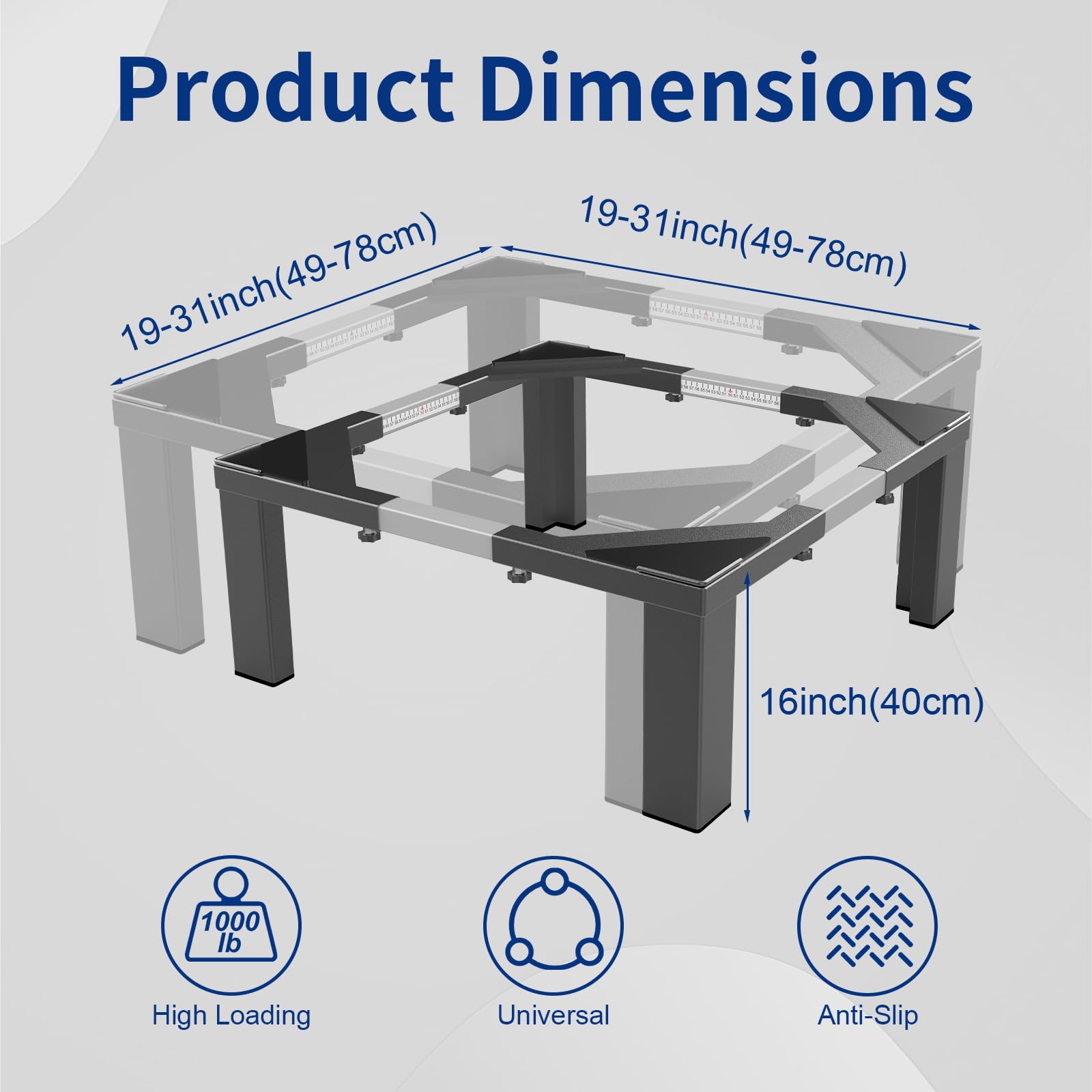 - 【Size Customizable】Washing machine stand base can be adjusted from 19 inches to 31 inches (width and length), the connection center has clear scale lines for easy alignment when mounting or adjusting, Our laundry pedestal is suitable for various brands of washing machine and dryer