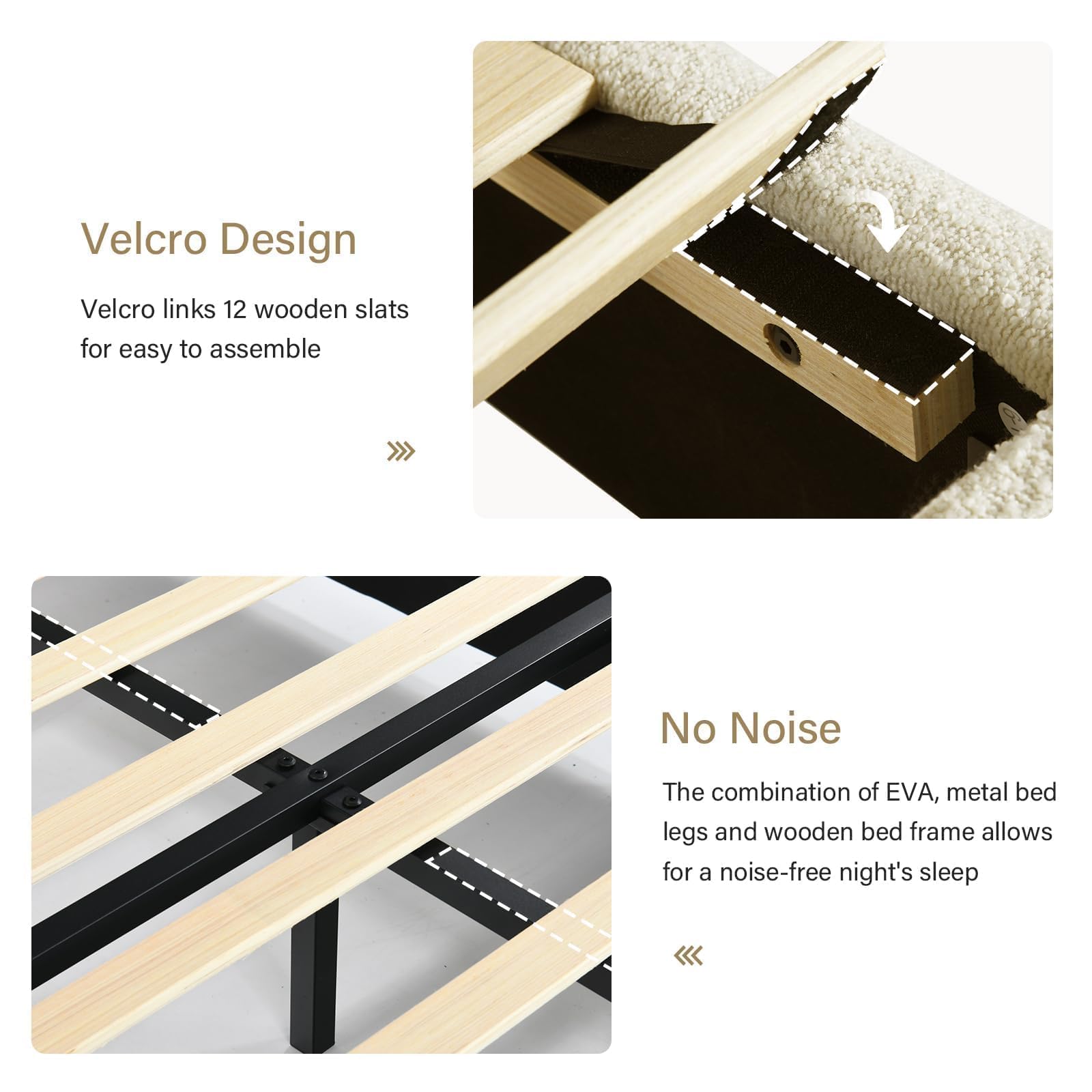 - Fluffy Boucle Fabric: The cream-colored california king bed frame is upholstered in a cloud-like terry fabric that is soft to the touch while providing a fluffy texture. Boucle fabric all-over fabric cover for bold style, filling your home with warmth and calm so you can sleep in style