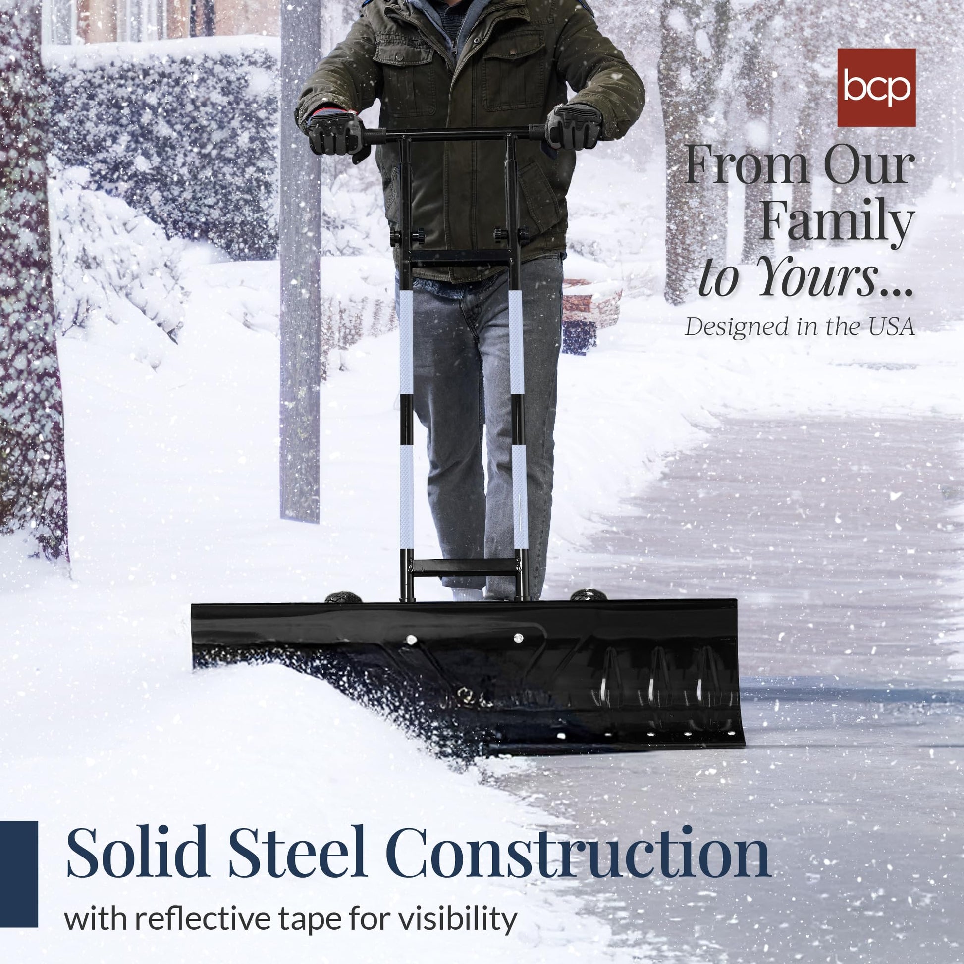 Best Choice Products 36in Heavy Duty Steel Snow Shovel Pusher for Driveway w/Wheels, Adjustable Handle, Angled Blade, Efficient Snow Removal, Back Saver Snow Plow with Safety Reflective Tape - Black