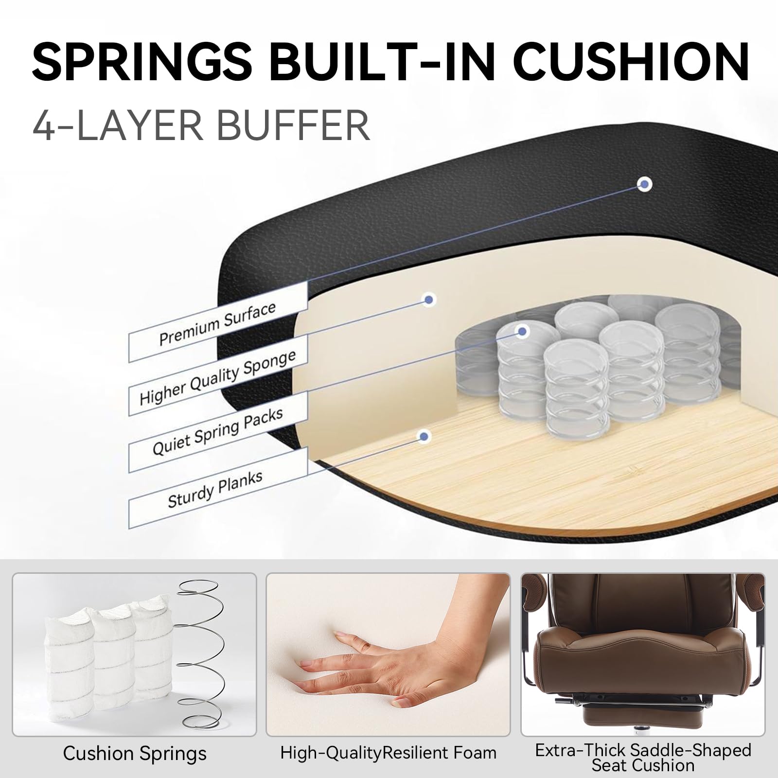 - SAFE AND DURABLE EXECUTIVE OFFICE CHAIR: The home office chair is BIFMA certified and equipped with a level 3 gas cylinder certified by SGS. This computer chair features a high-strength metal base and smooth-rolling casters, ensuring long-lasting durability for the big and tall office chair. The base can support up to 450 pounds, providing safety and reliability.