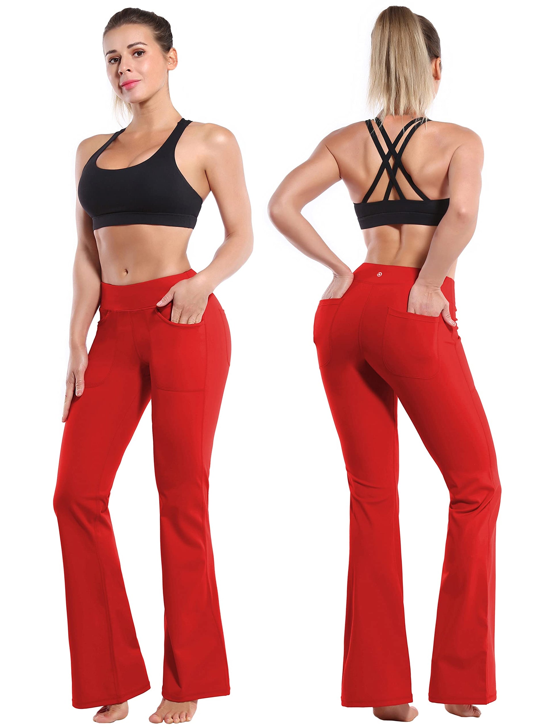 BUBBLELIME 29"/31"/33"/35" 4 Styles Women's High Waist Bootcut Yoga Pants - Out Pockets_Scarlet L-35 Inseam