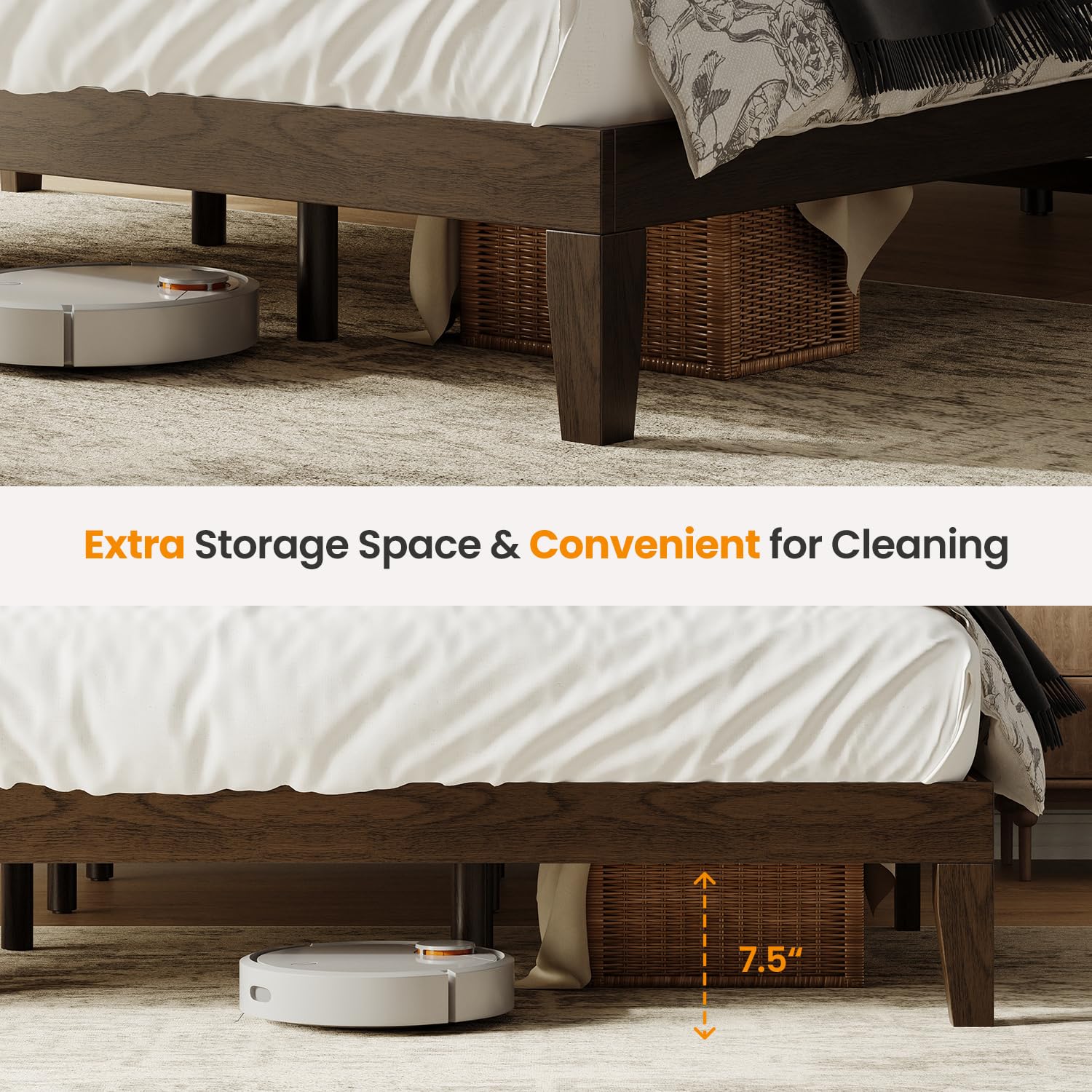 - [Spacious Under-Bed Storage] This bed frame provides 7.5 inches of clearance underneath, perfect for storing boxes, clothes, or other items. The raised design makes it easy to clean the floor beneath while keeping your room neat and organized by storing less-used belongings out of sight.