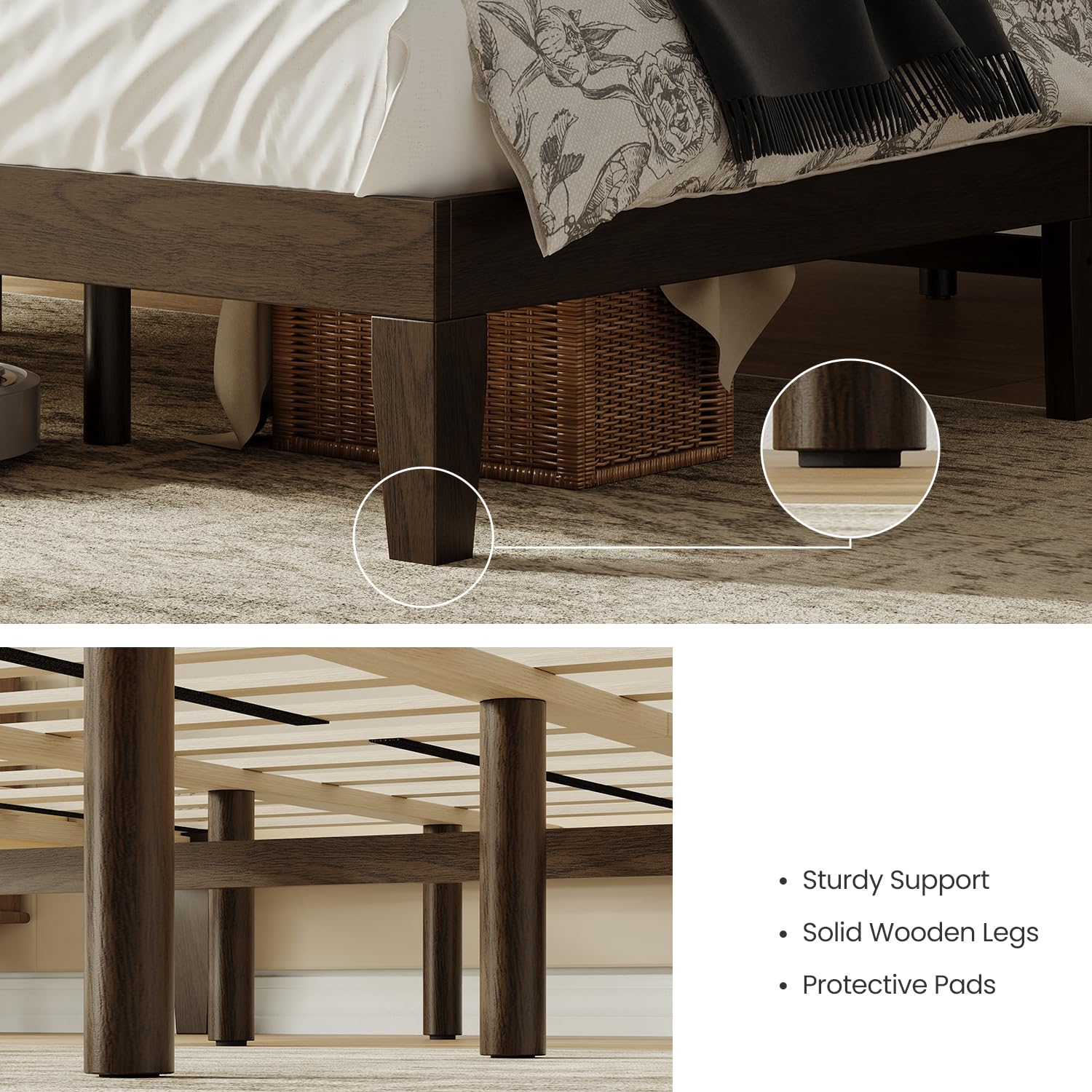 Cal King Size Wood Platform Bed Frame, 12 Inch Solid Wood Bed Frame with Wooden Slats, No Box Spring Needed, Easy Assembly,Espresso