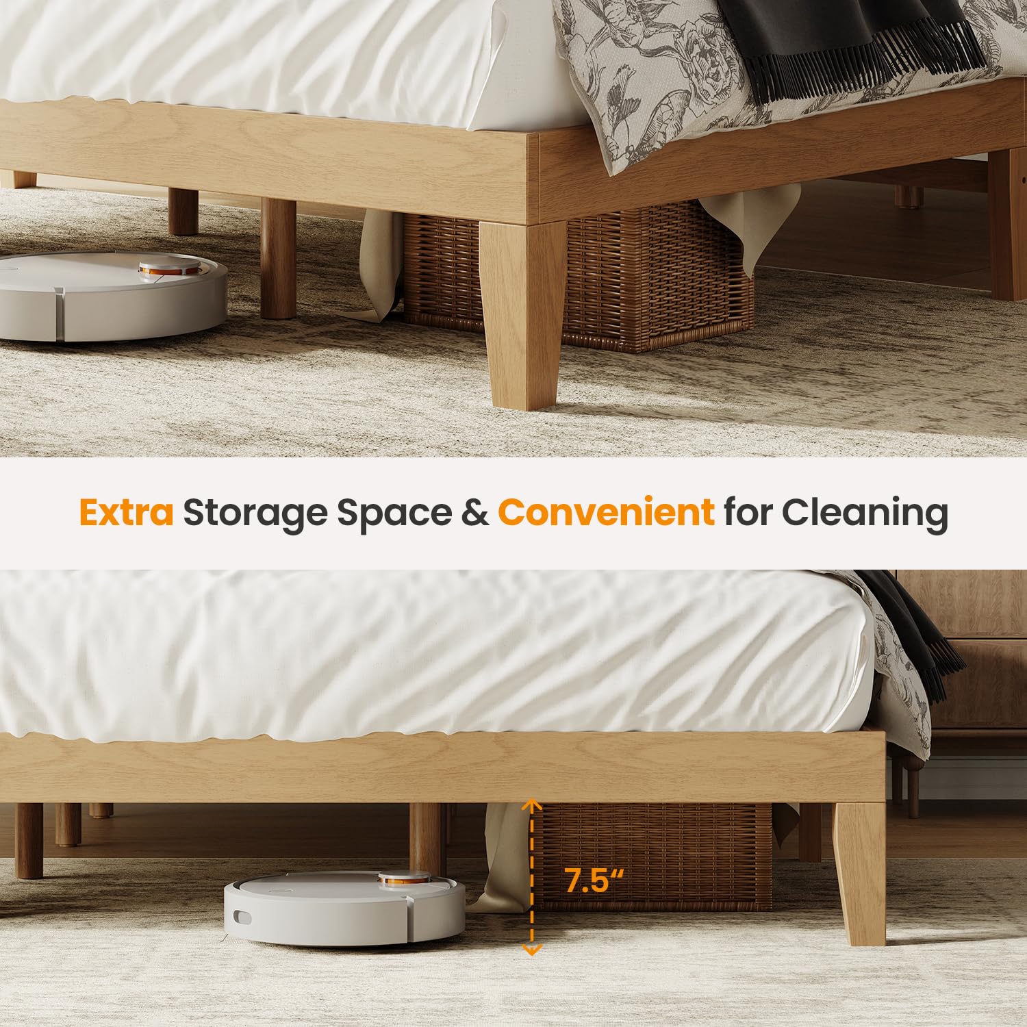 - [Spacious Under-Bed Storage] This bed frame provides 7.5 inches of clearance underneath, perfect for storing boxes, clothes, or other items. The raised design makes it easy to clean the floor beneath while keeping your room neat and organized by storing less-used belongings out of sight.