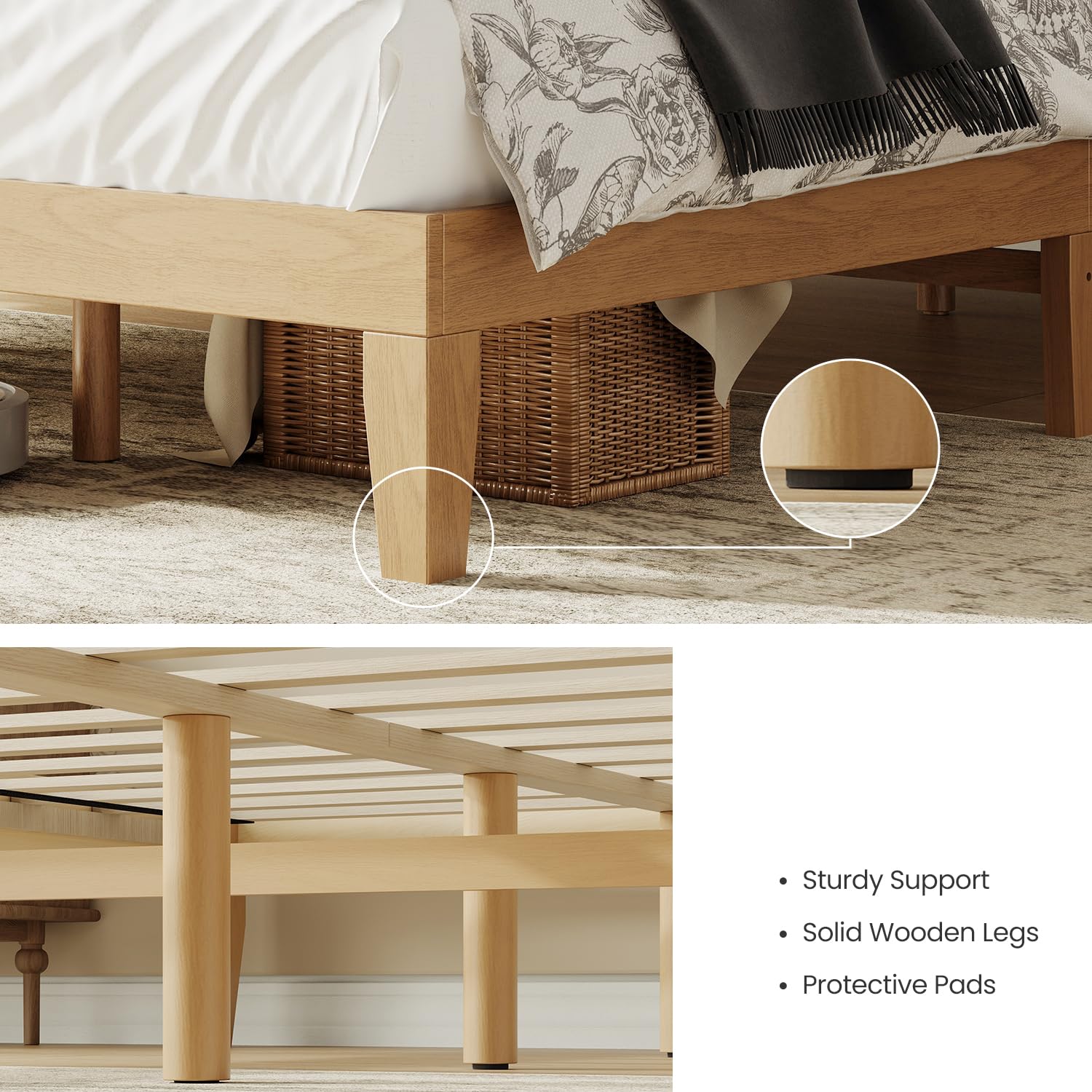 - [Modern Design] Crafted with a natural solid wood frame, this bed frame features a sleek and simple style that adds a touch of elegance to your bedroom. The headboard-free design saves space, making it a perfect choice for small or modern rooms.