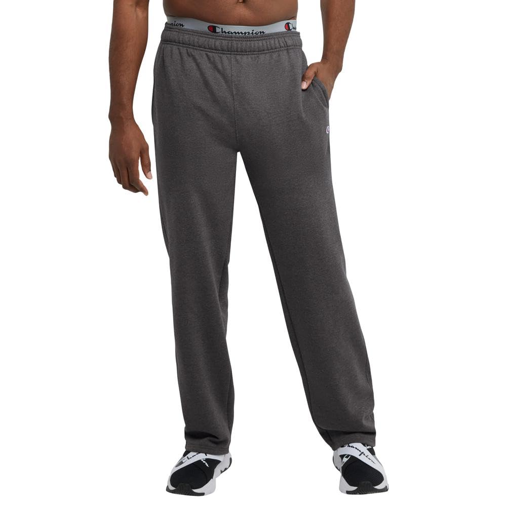 Champion Men's Open-Bottom Fleece Sweatpants, Standard Fit, Midweight, Available in Regular and Big, Granite Heather-C Patch Logo, 3X-Large Tall