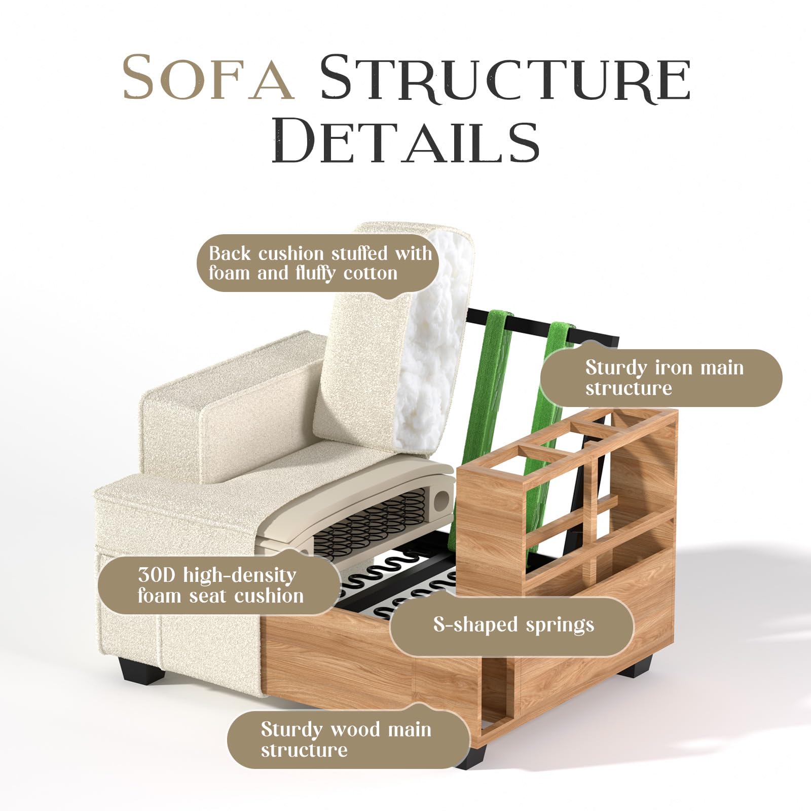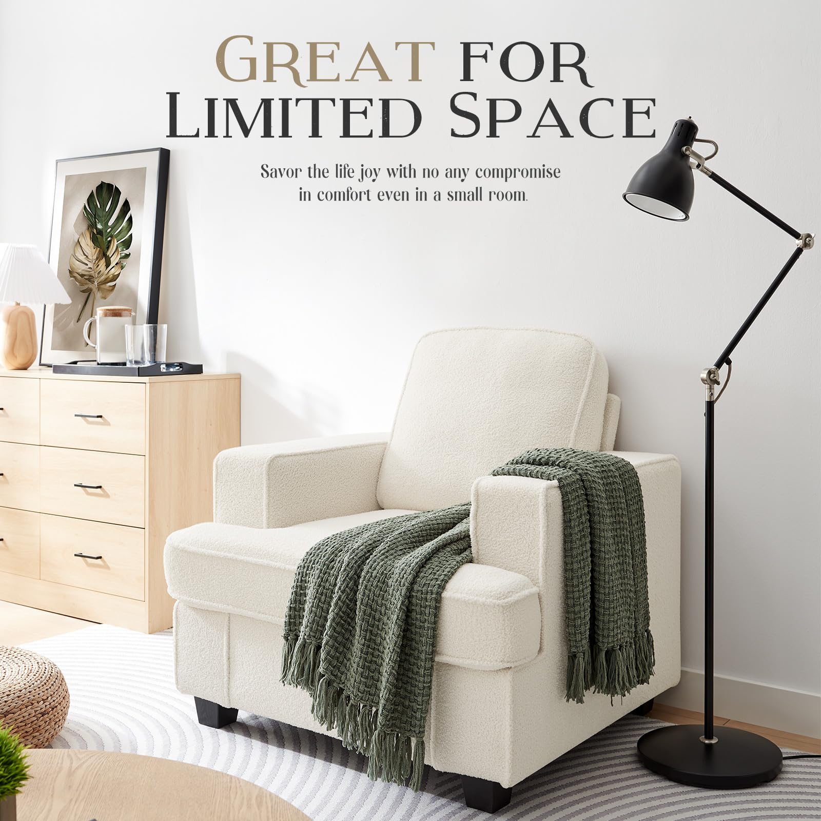 - 【Luxury Cloud Cushions】: 21.6-inch sofa depth with triple-layer foam + pocket springs—perfect for movie nights, naps, or hosting friends. Pro tip: The cushion is vacuum-packed. To achieve optimal comfort, please fluff the cushion back to its original shape after unpacking.