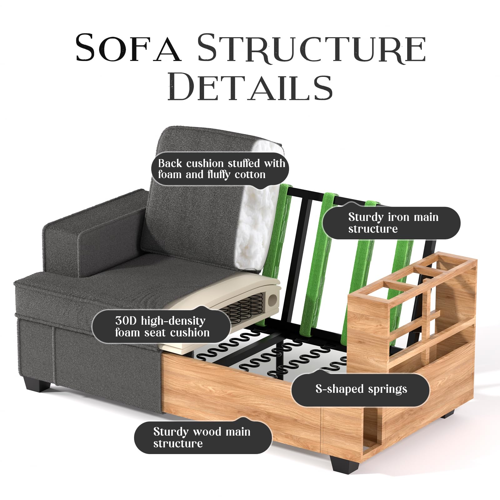 - 【Luxury Cloud Cushions】: 21.6-inch sofa depth with triple-layer foam + pocket springs—perfect for movie nights, naps, or hosting friends. Pro tip: The cushion is vacuum-packed. To achieve optimal comfort, please fluff the cushion back to its original shape after unpacking.