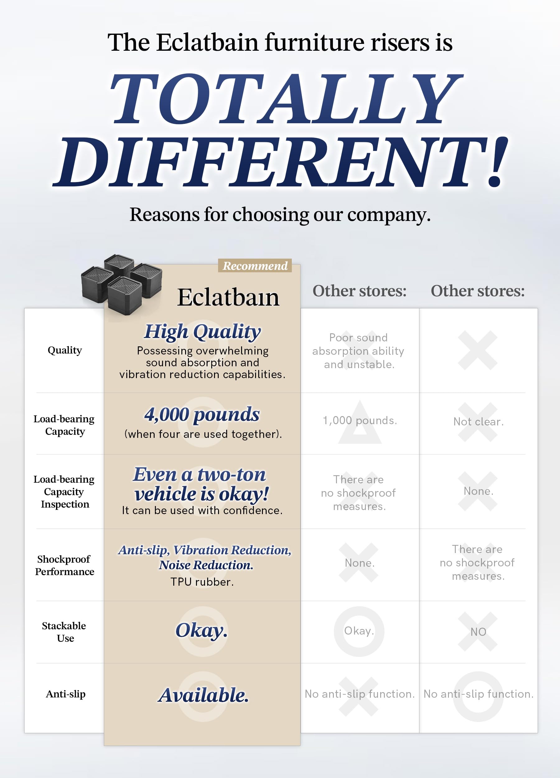 EclatBain Bed Risers Furniture Risers Heavy-Duty Rectangular Adjustable Block Lift to 3 inches and 4.3 inches Desk, Sofa, Chair Legs, Refrigerator, Washing Machine Support up to 4000 pounds