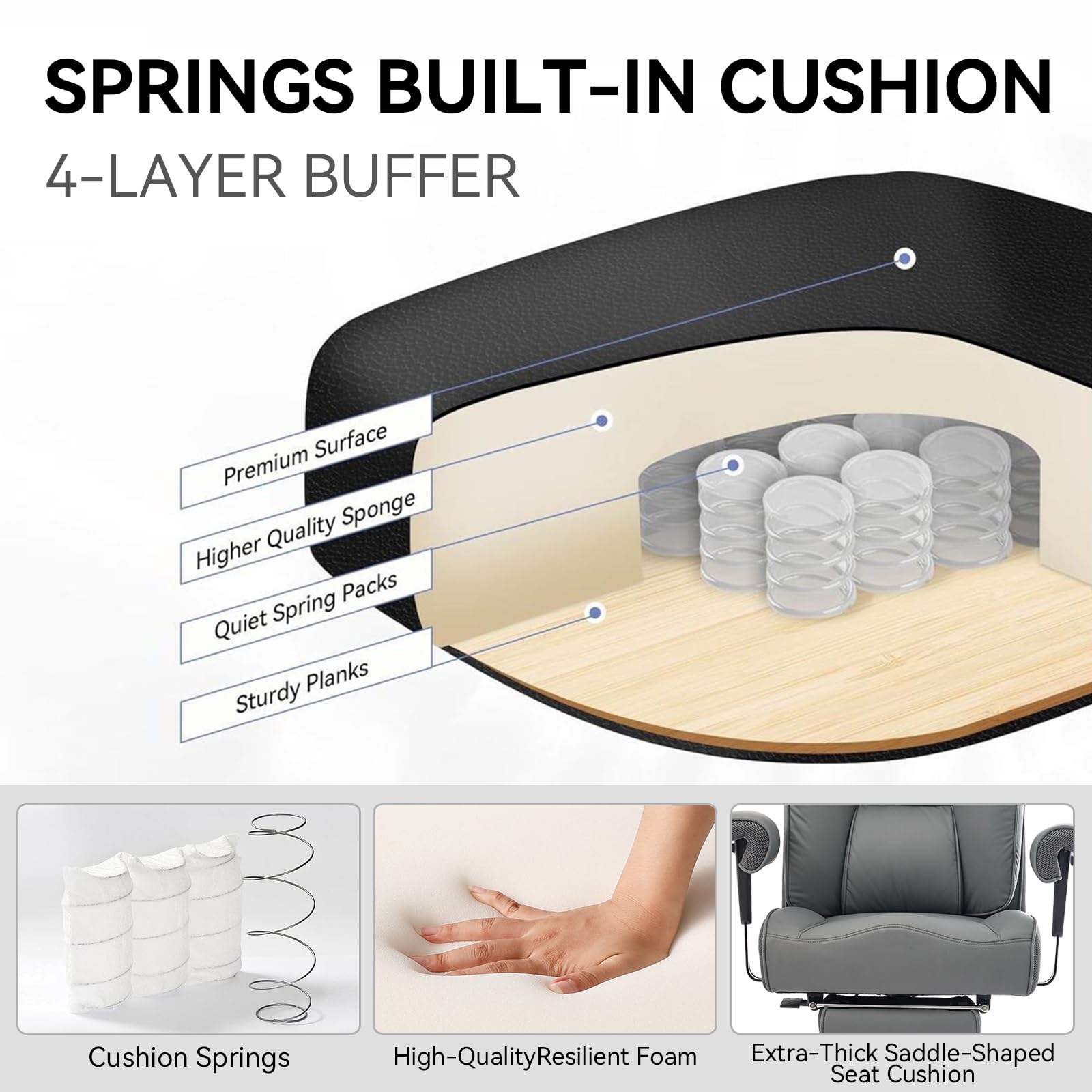 - ERGONOMIC DESK CHAIR FOR LONG HOURS — This chair features adjustable height, armrests, and a reclining back that tilts from 90° to 135° with customizable tilt tension. HIGH BACK OFFICE CHAIR WITH FOOTREST — The office chair includes a retractable footrest, letting you relax or sit cross-legged while reading. This ergonomic chair works great as a desk chair, gaming chair, or computer chair for all-day use.