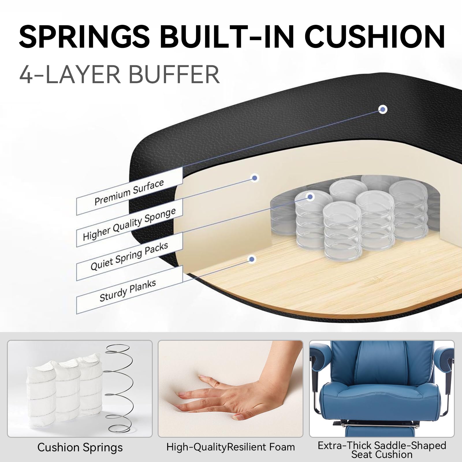 - HEAVY DUTY OFFICE CHAIR FOR MORE PEOPLE:The executive office chair is designed to meet the needs of larger individuals, providing all the comfort they require. The big and tall office chair can also be used as a cross-legged chair by average-sized people. The blue office chair features a spacious, breathable saddle-shaped seat cushion with elastic springs. The height of this office chair is adjustable, and a reclining backrest, making it convenient for tall users.