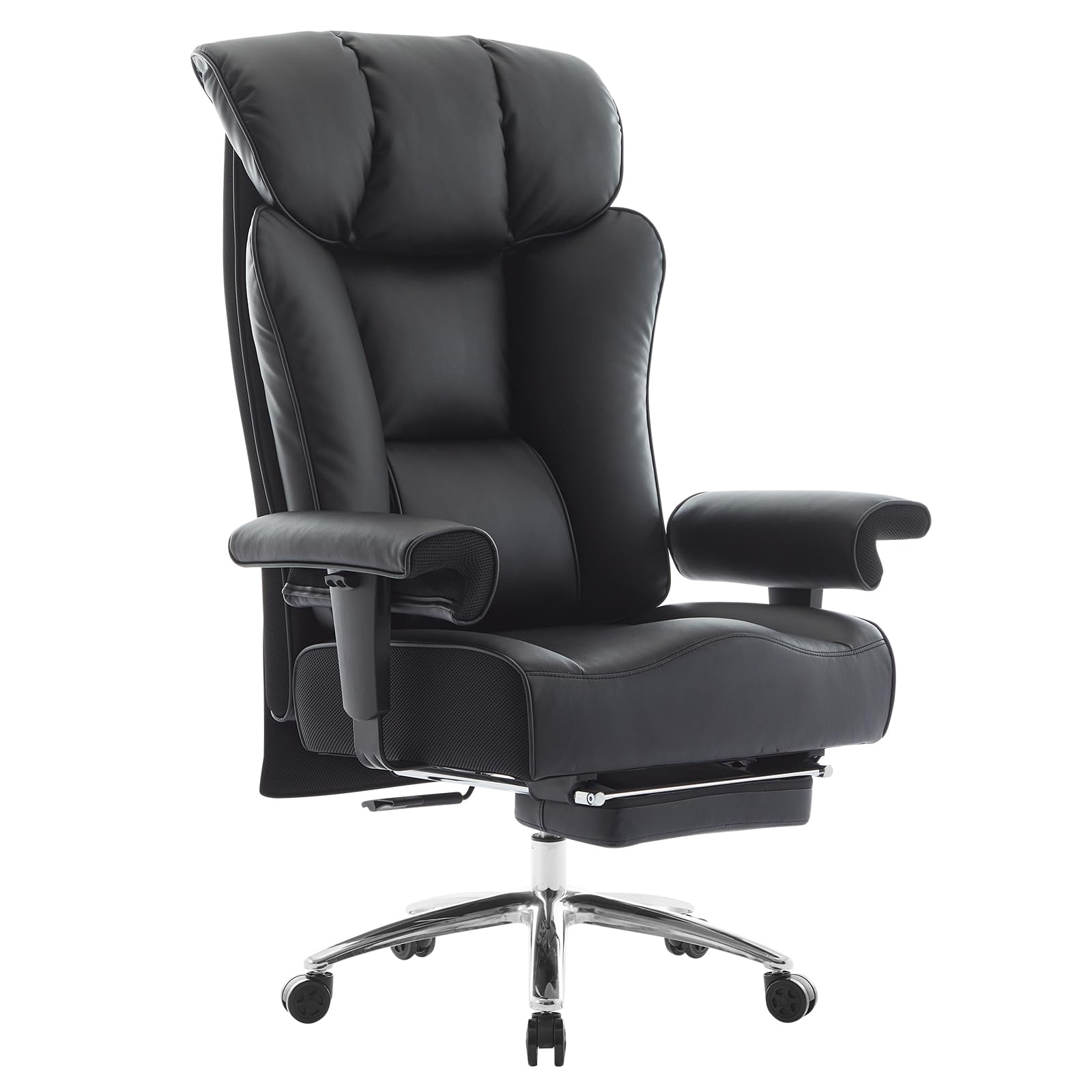 Efomao Ergonomic Office Chair 450LBS with Foot Rest, High Back PU Leather Executive Office Chair with Adjustable Armrests, Lumbar Support for Home or Work, Computer Chair, Black