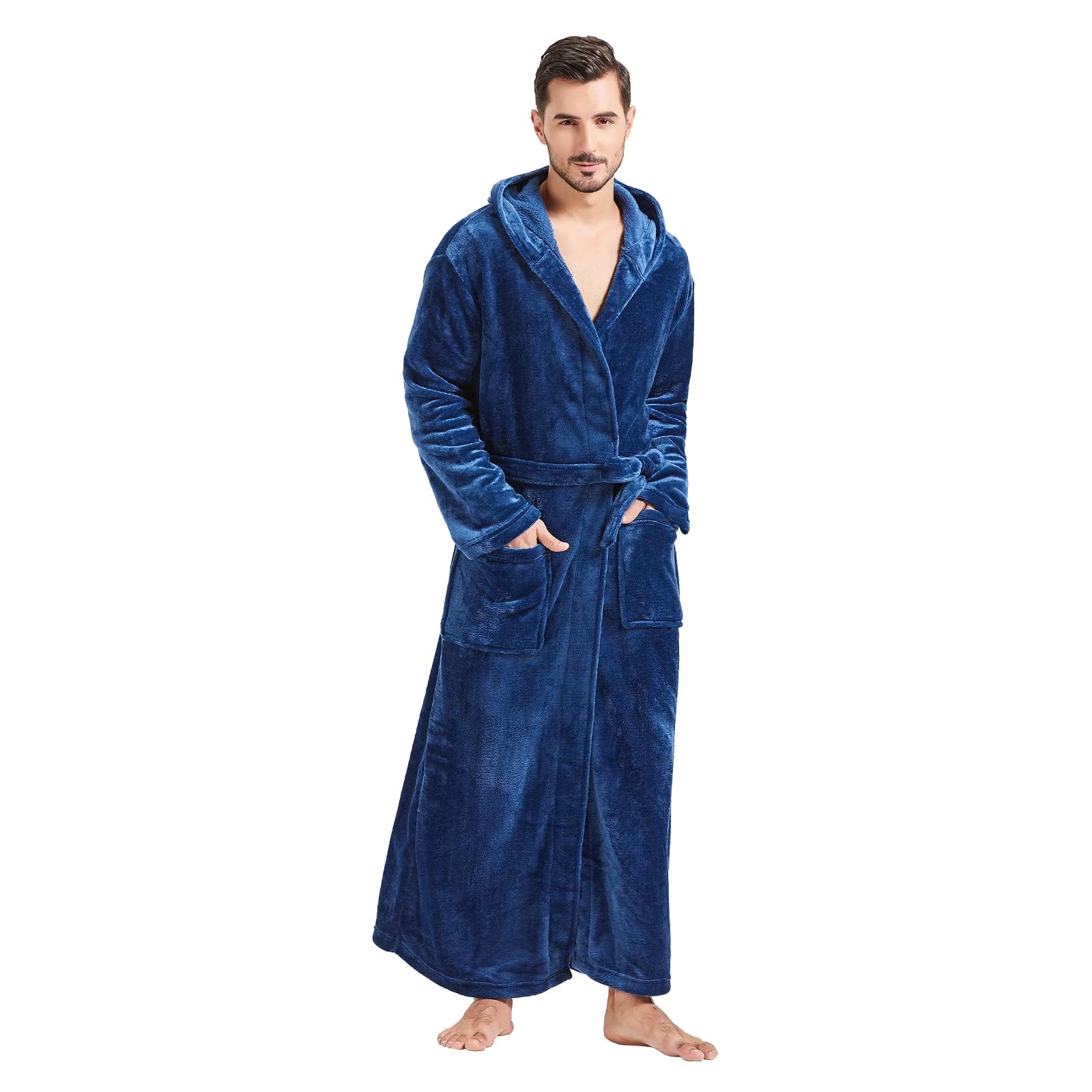 FashGudim Mens Robes Big and Tall with Hood Flannel Fleece Men Bathrobe with Hood Full Length Plush Long Robe Warm House Robe (Navy, 4XL)