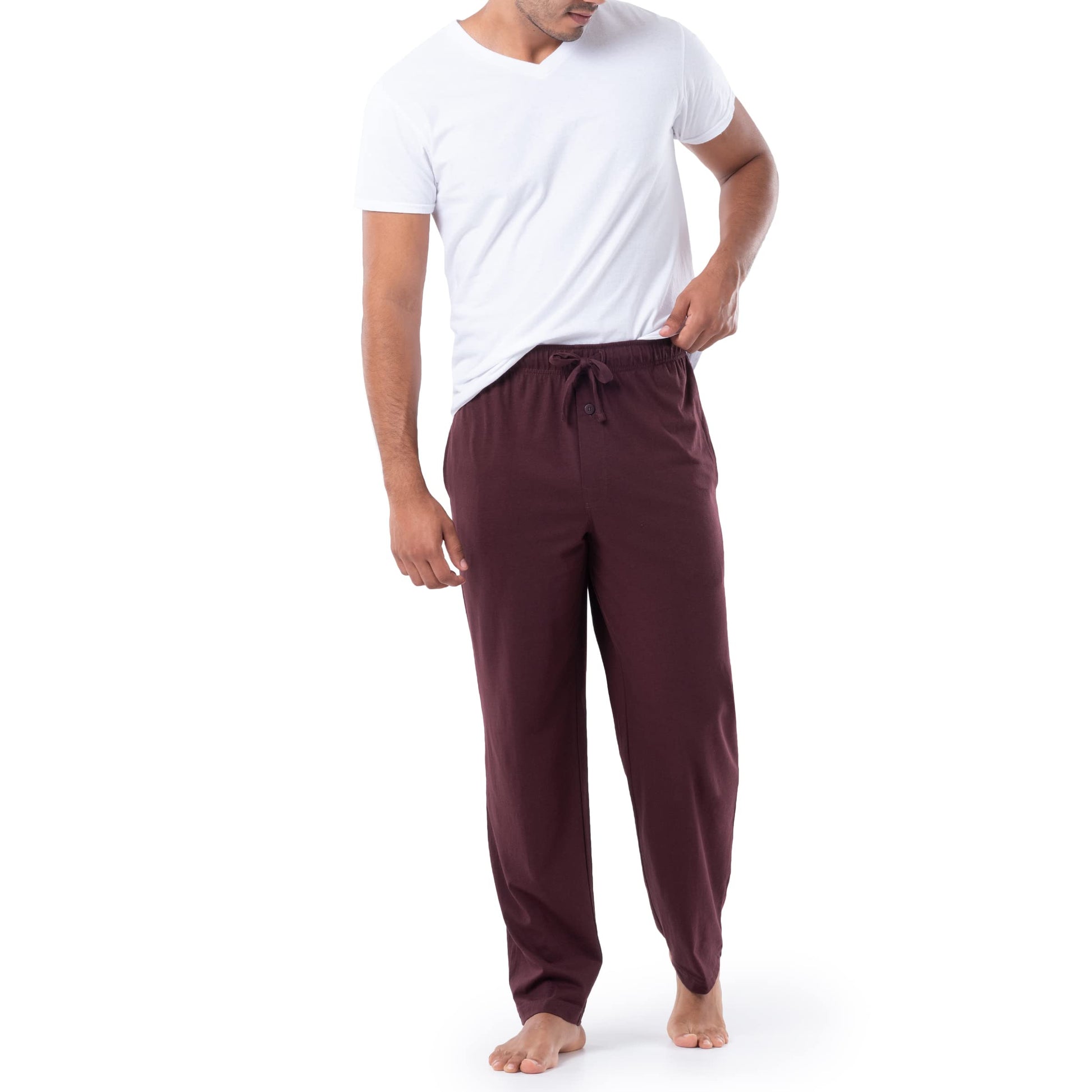 Fruit of the Loom Men's 1-Pack Extended Sizes Jersey Knit Sleep Pant (1 & 2 Packs), Dark Red, Large Tall