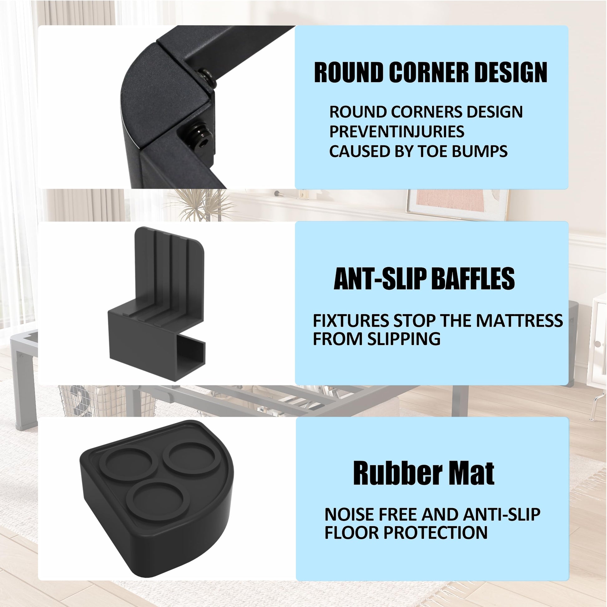 FUIOBYVV California King Bed Frame with Round Corner Edge Legs 14 inch High 3500 lbs Heavy Duty Metal Platform Bed Frame King Size No Box Spring Needed/Noise Free/Steel Slat Support/Non-Slip Black
