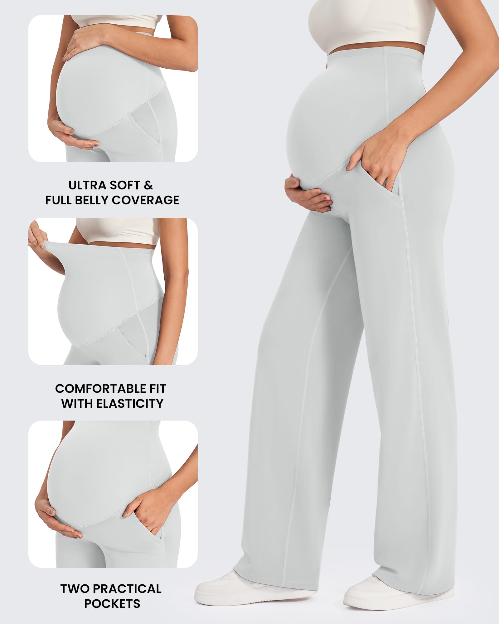 G4Free Maternity Pants for Work High Waist Straight Palazzo Pants with Pockets for Athletic Yoga (Light Gray,M,32")