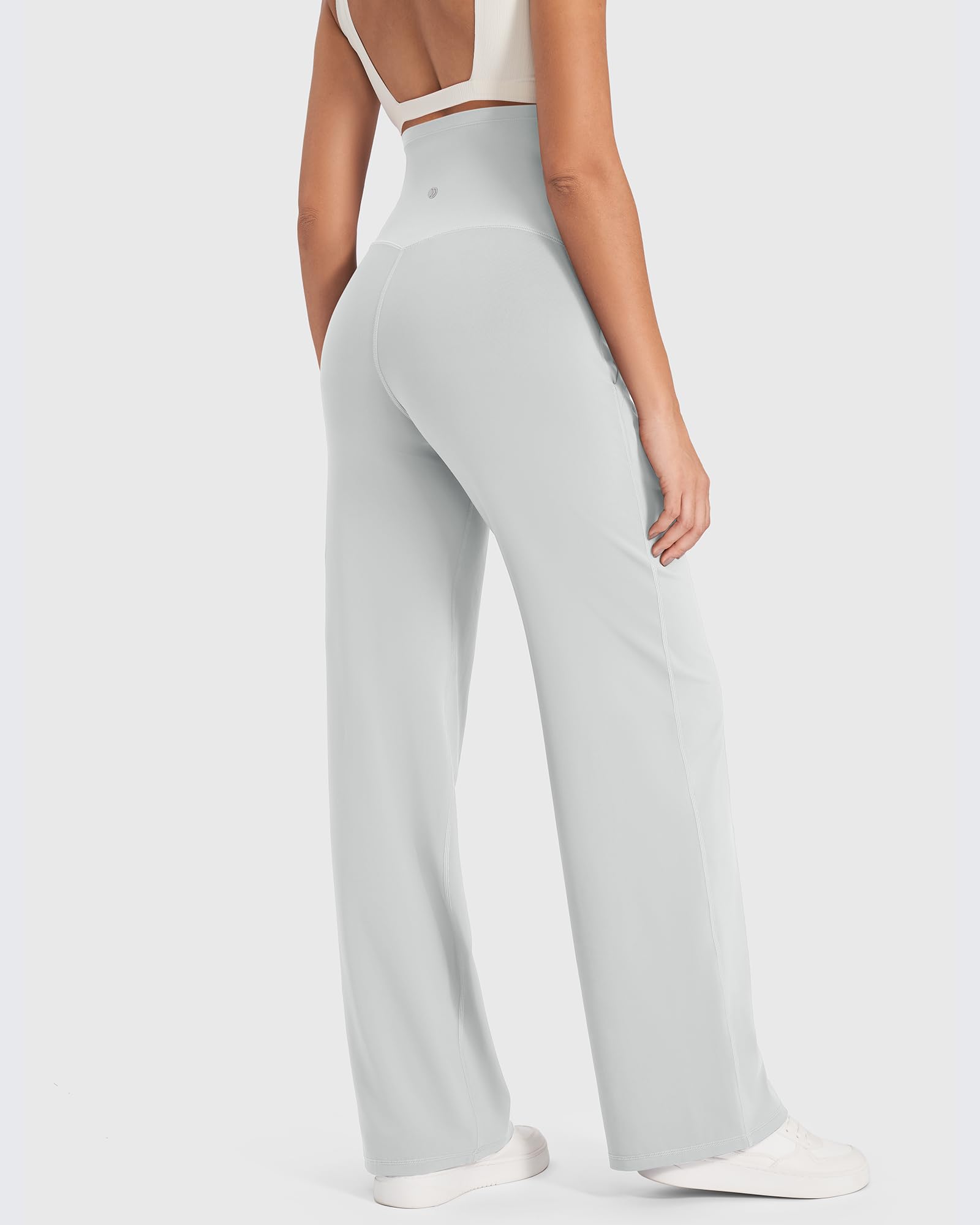 G4Free Maternity Pants for Work High Waist Straight Palazzo Pants with Pockets for Athletic Yoga (Light Gray,XL,32")