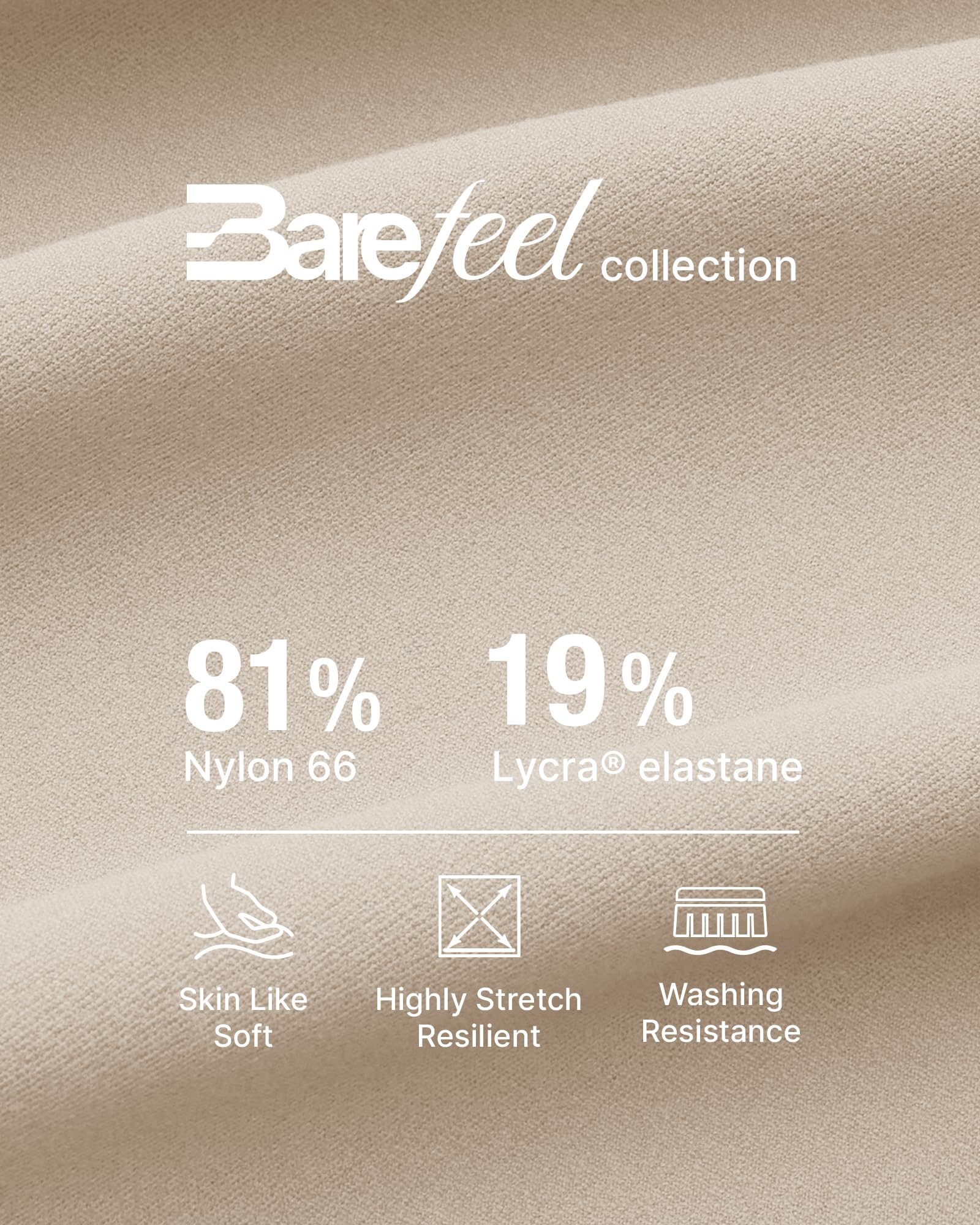 - BareFeel fabric features extremely soft and skin-friendly, designed for yoga, leisure and life. Skin-like touch, Soft on body