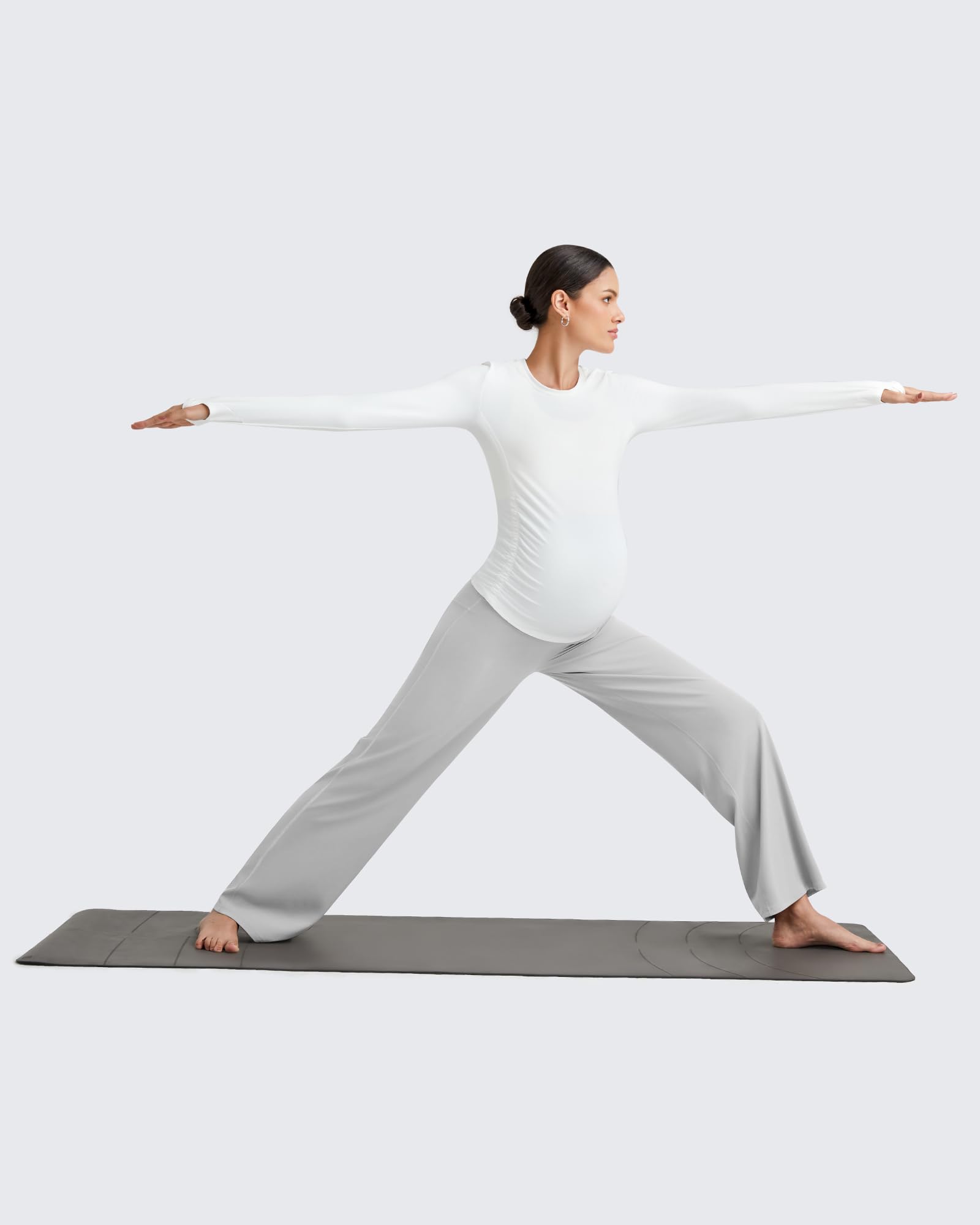 G4Free Maternity Yoga Pants Wide Leg Soft Pregnancy Clothes for Lounge Over The Belly Business Work Trousers Casual(Light Gray,L,32")