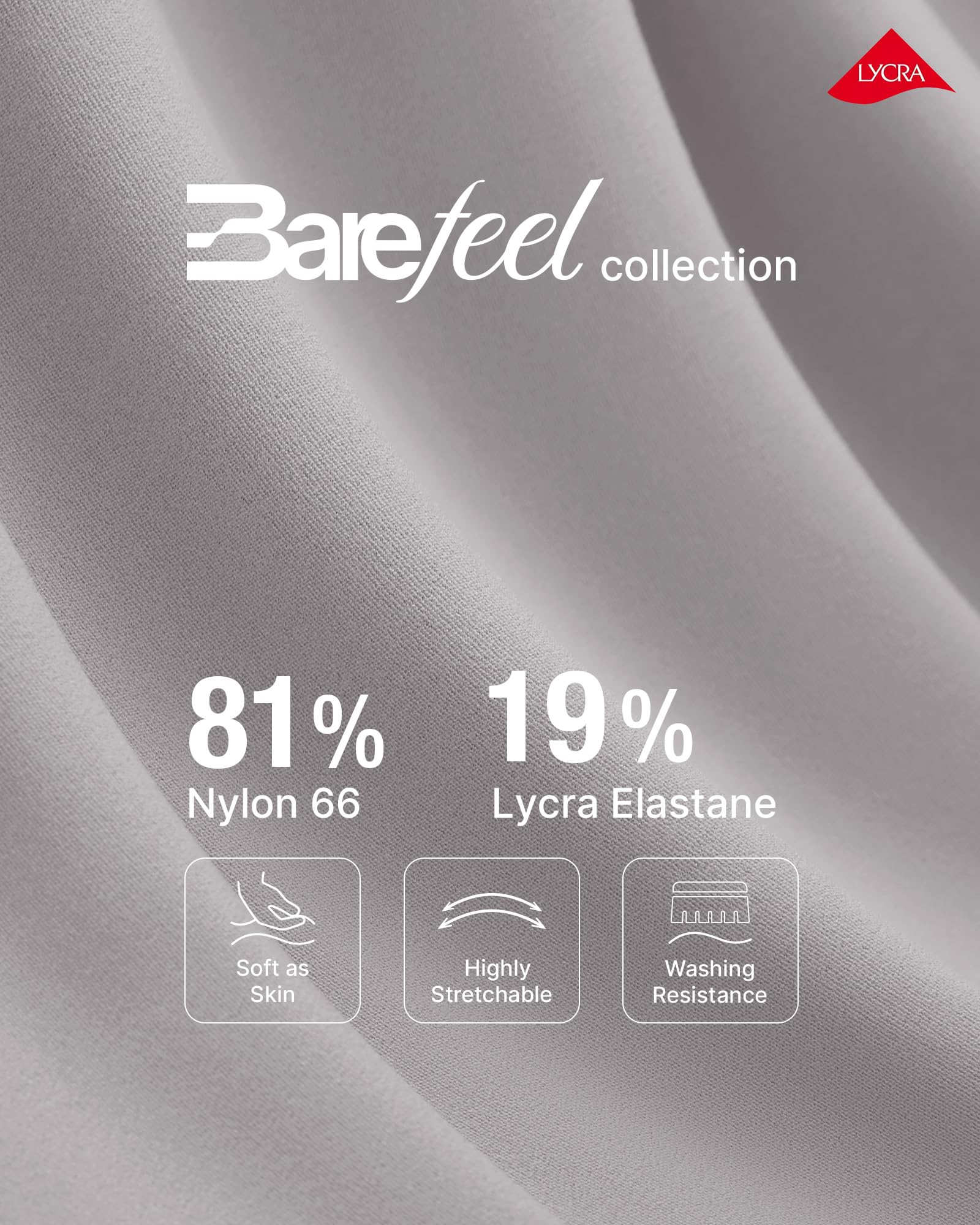 - BareFeel fabric features extremely soft and skin-friendly, designed for yoga, leisure and life. Skin-like touch, Soft on body