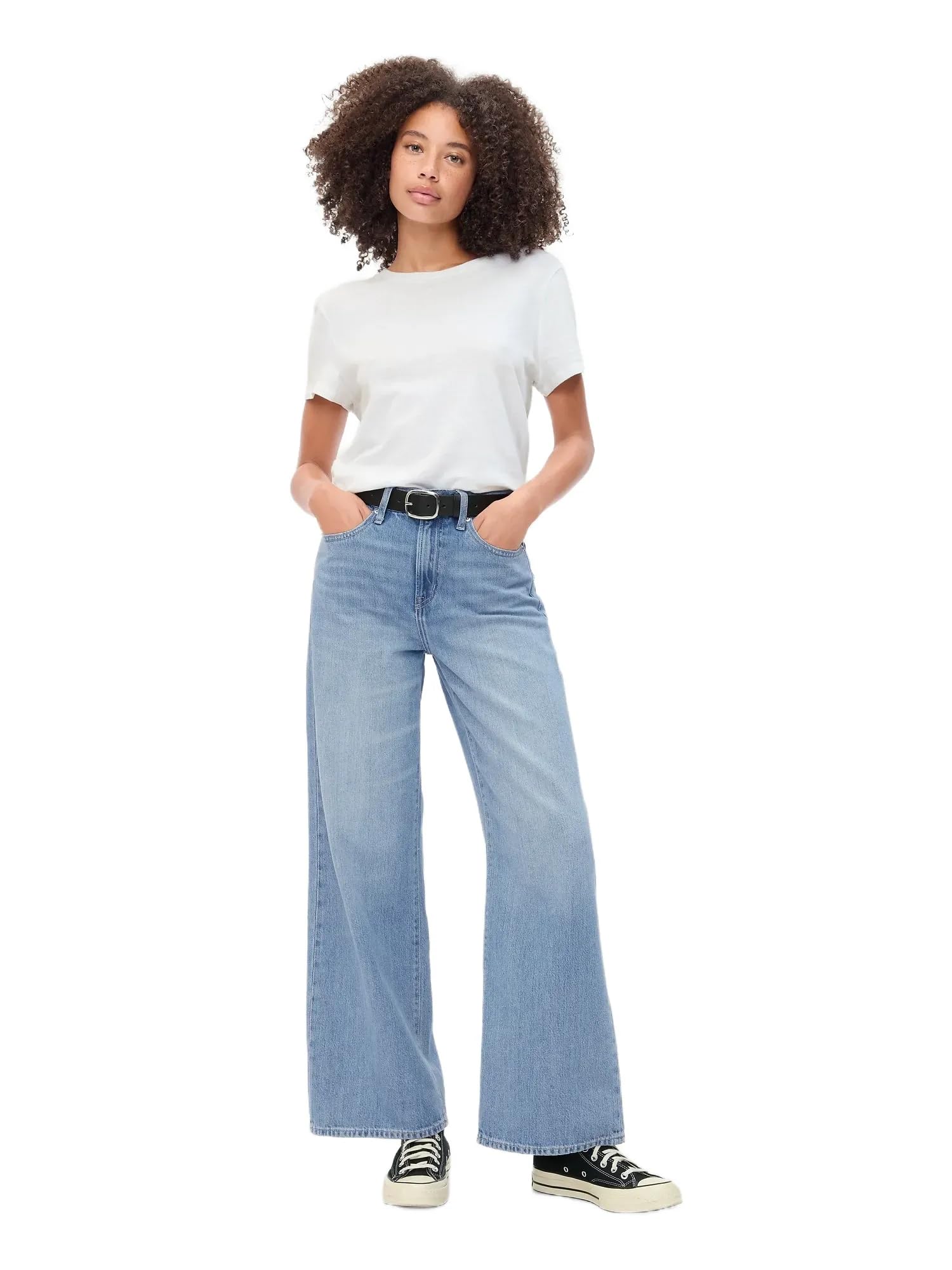 GAP Womens High Rise Wide Leg Jeans Light Bergie 32 Long