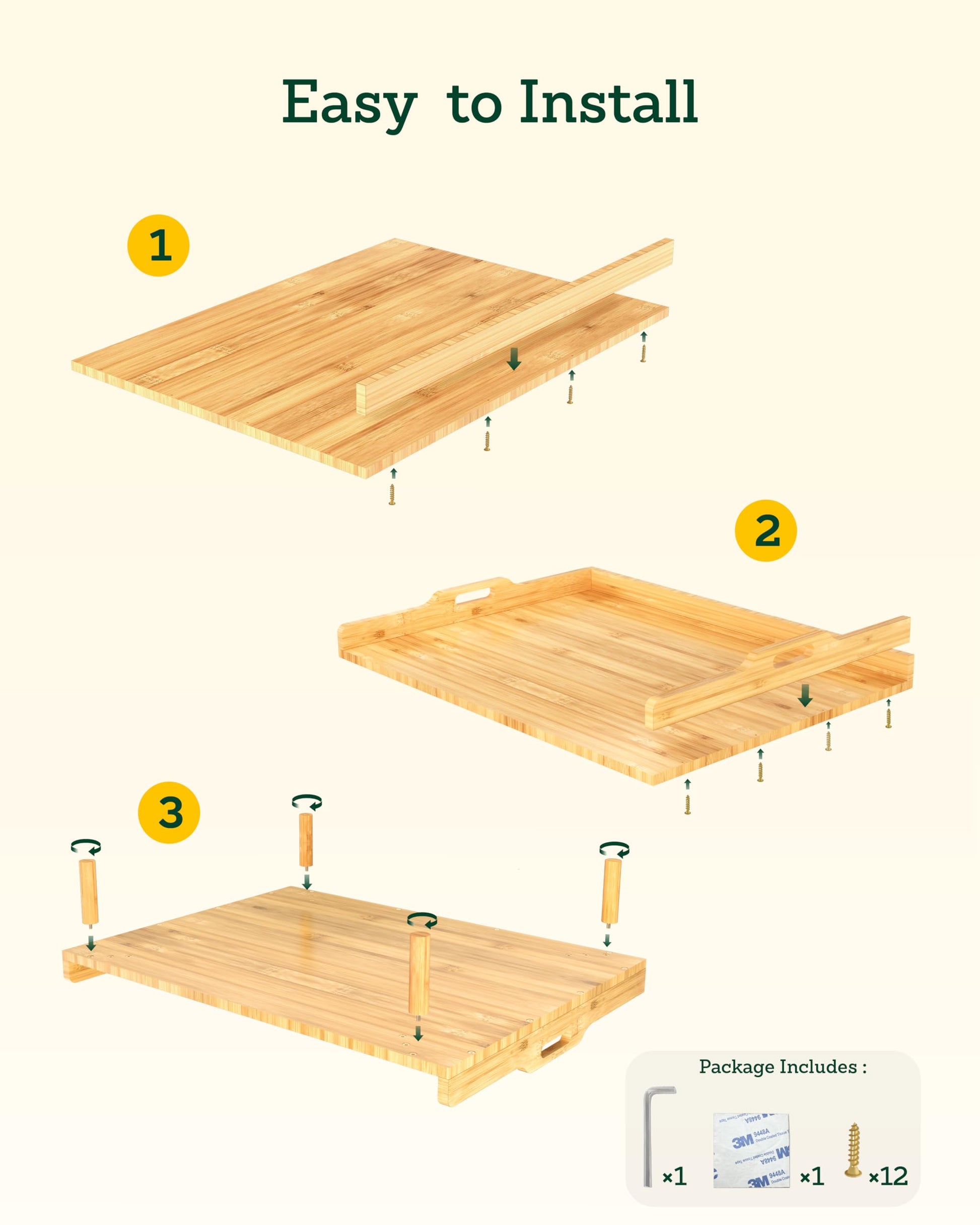 - Easy to Install: The package includes not only the wood assemblies for the noodle board but also the required tools, small wrenches and non-slip mats. Easy to install and disassemble. You can do it all by yourself!