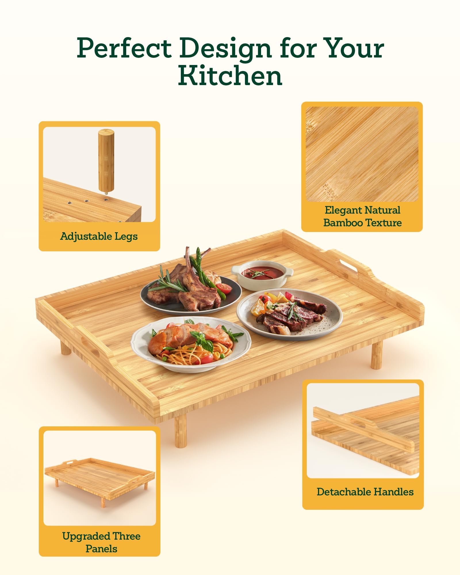 Gas Stove Cover with Extra Large Cutting Board, 29"L x 22"W Bamboo Noodle Board with Handles and Adjustable Legs for Electric or Gas Top, Counter Space, Sink Cover, or RV Protector
