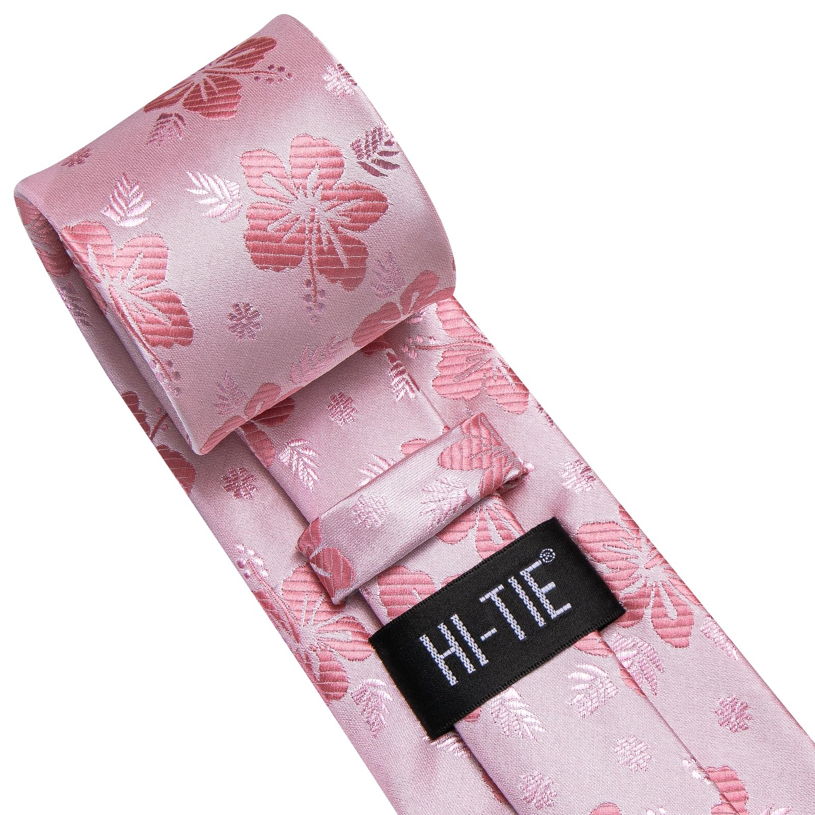 Hi-Tie 70'' Extra Long Ties for Men Silk Pink Mens Long Ties Set Floral Necktie and Pocket Square Cufflink for Wedding