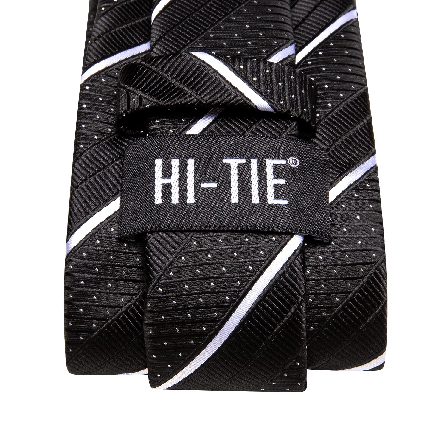 Hi-Tie Black and White Tie 63'' Long Ties for Men Silk Mens Ties Set Suit Necktie and Pocket Square Cufflink for Wedding