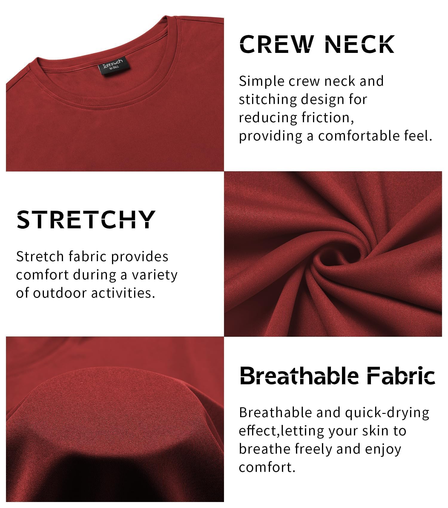 - FEATURES: Stretch short sleeves and Athletic crew neck design gives you more flexibility.