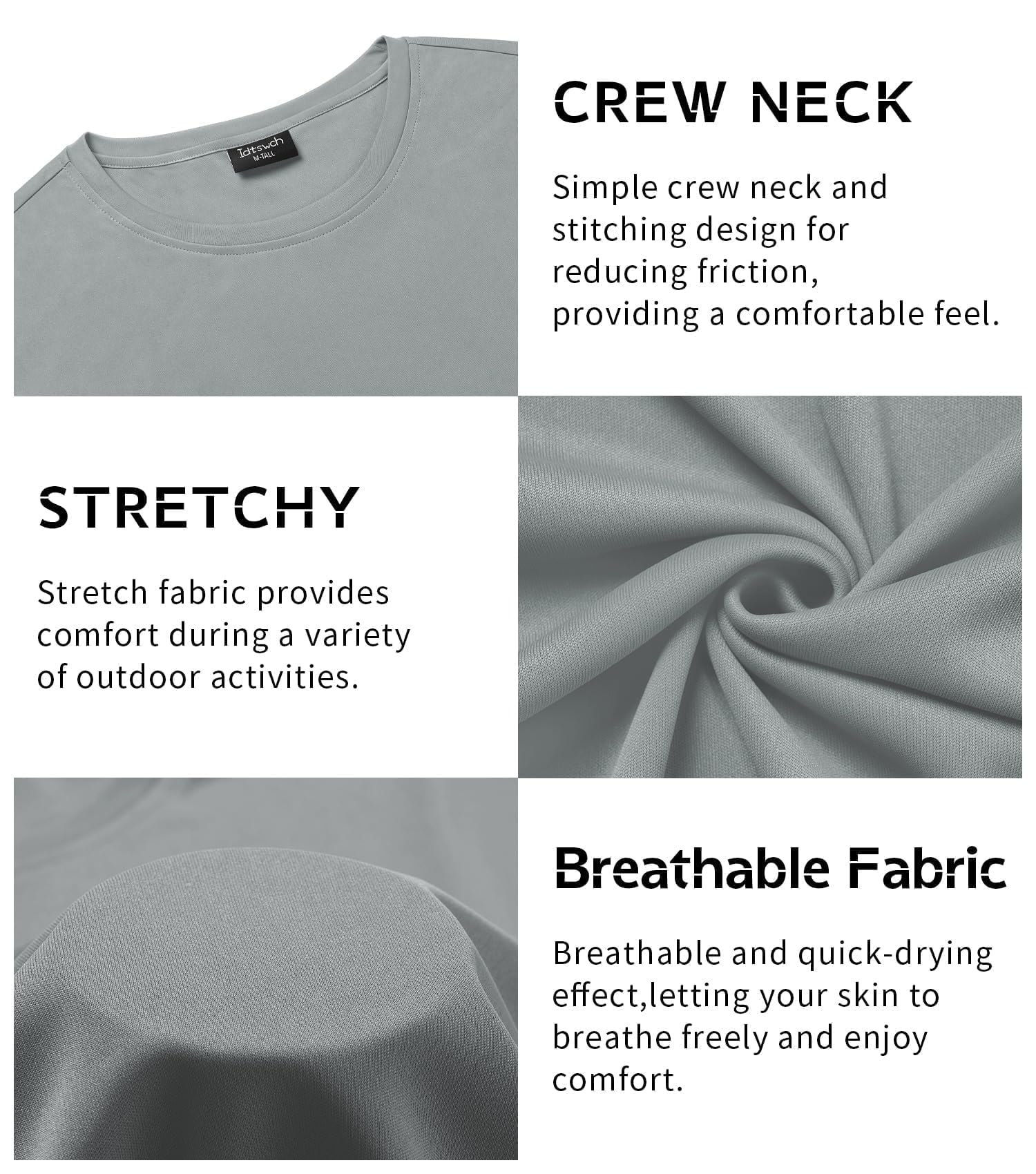 - FEATURES: Stretch short sleeves and Athletic crew neck design gives you more flexibility.