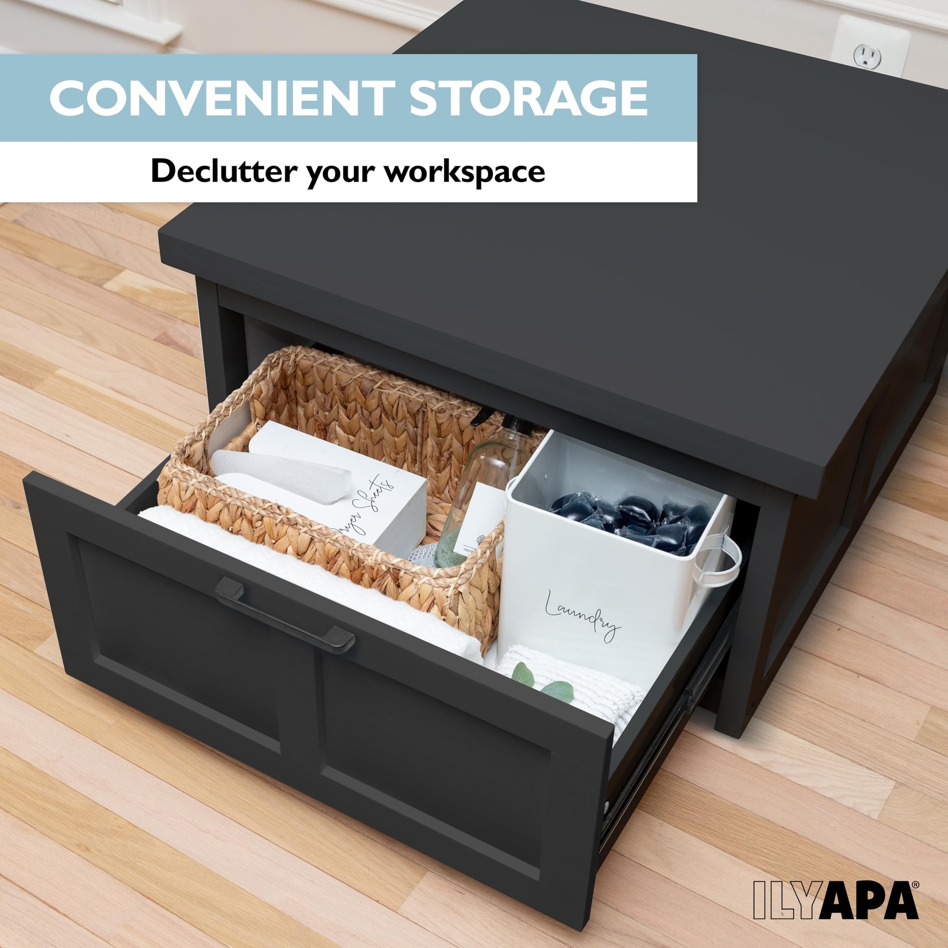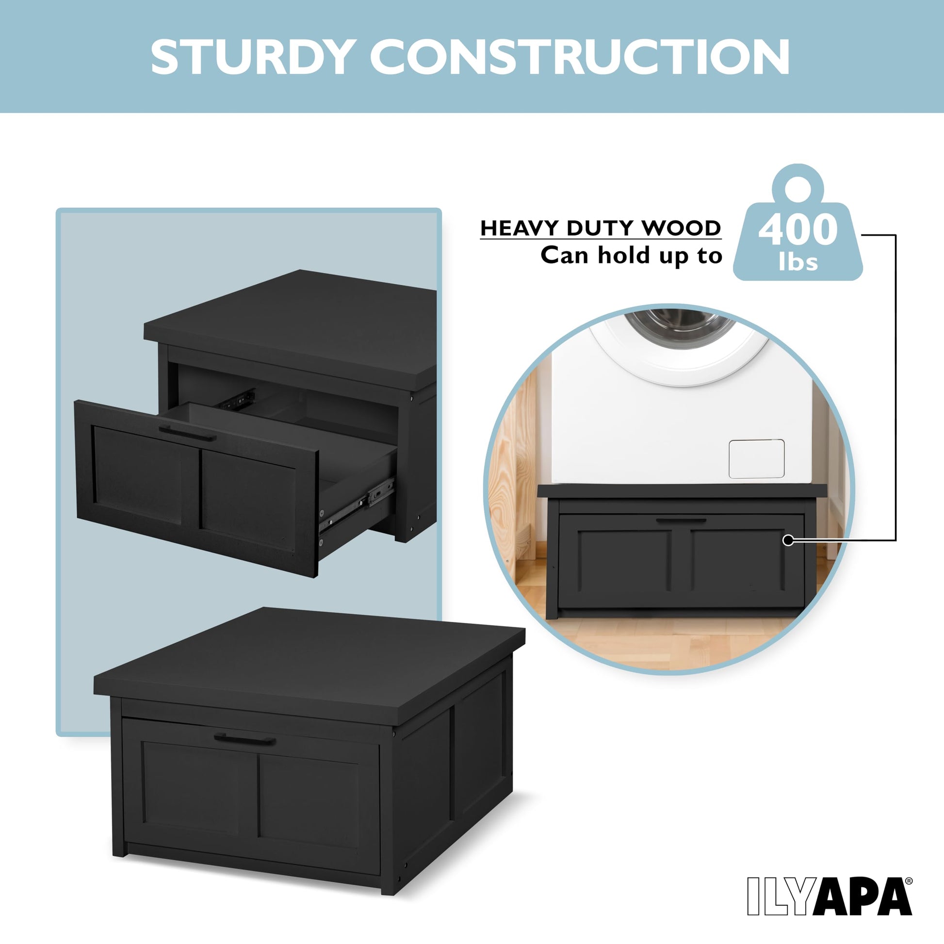 Ilyapa Washer and Dryer Stand - 28x28x16 in. Universal Laundry Pedestal, with Drawer - Washing Machine Base Compatible with Samsung, LG, GE, Maytag