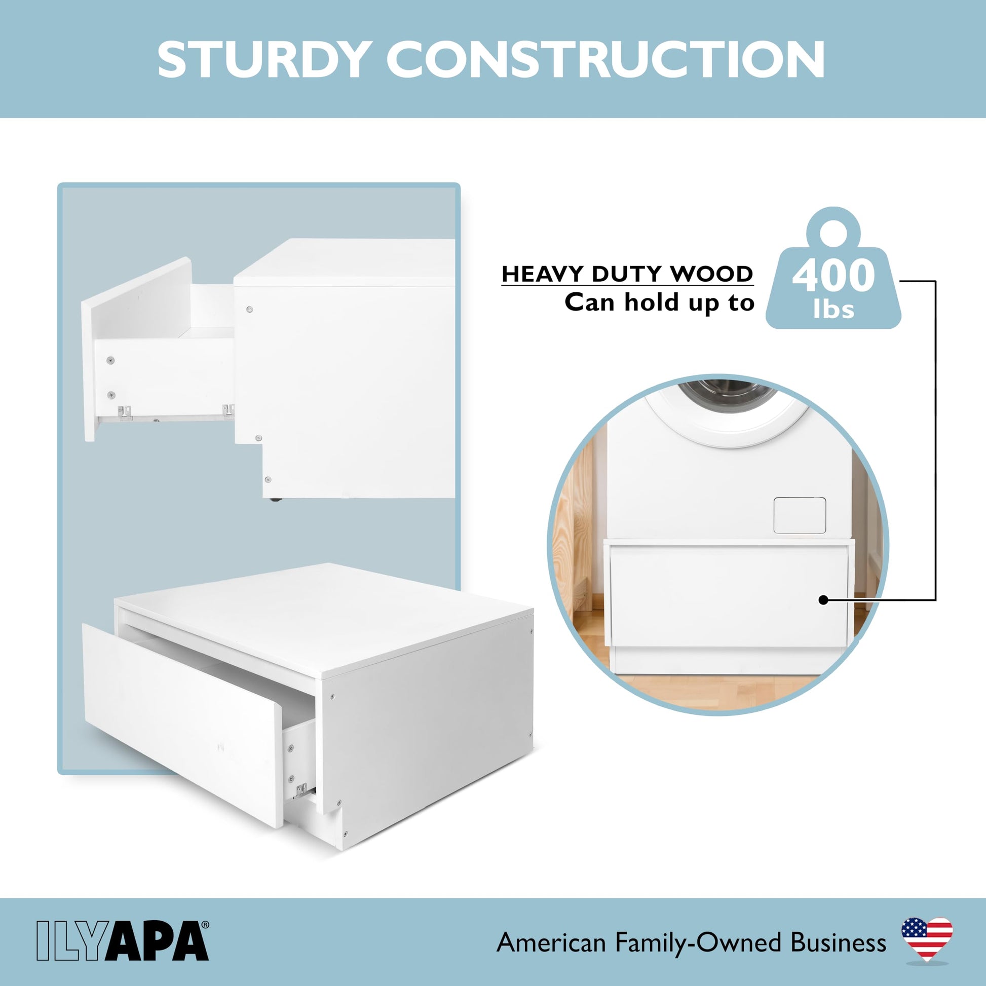 Ilyapa Washer and Dryer Stand - Universal Wooden Laundry Pedestal with Drawer - Compatible with Samsung, LG, GE, Maytag - 28x28x16 in. Patent Pending