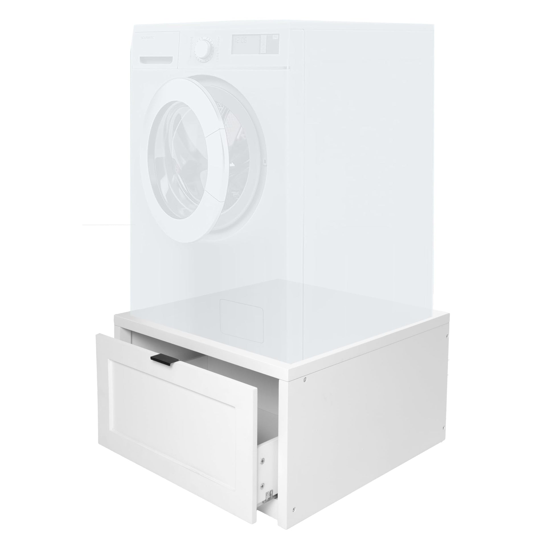 - Built-In Storage Drawer for Organization – Streamline your laundry space with an integrated pull-out drawer that keeps detergent, dryer sheets, and other supplies within reach. This washing machine shelf helps minimize clutter and maximize utility in your laundry room.