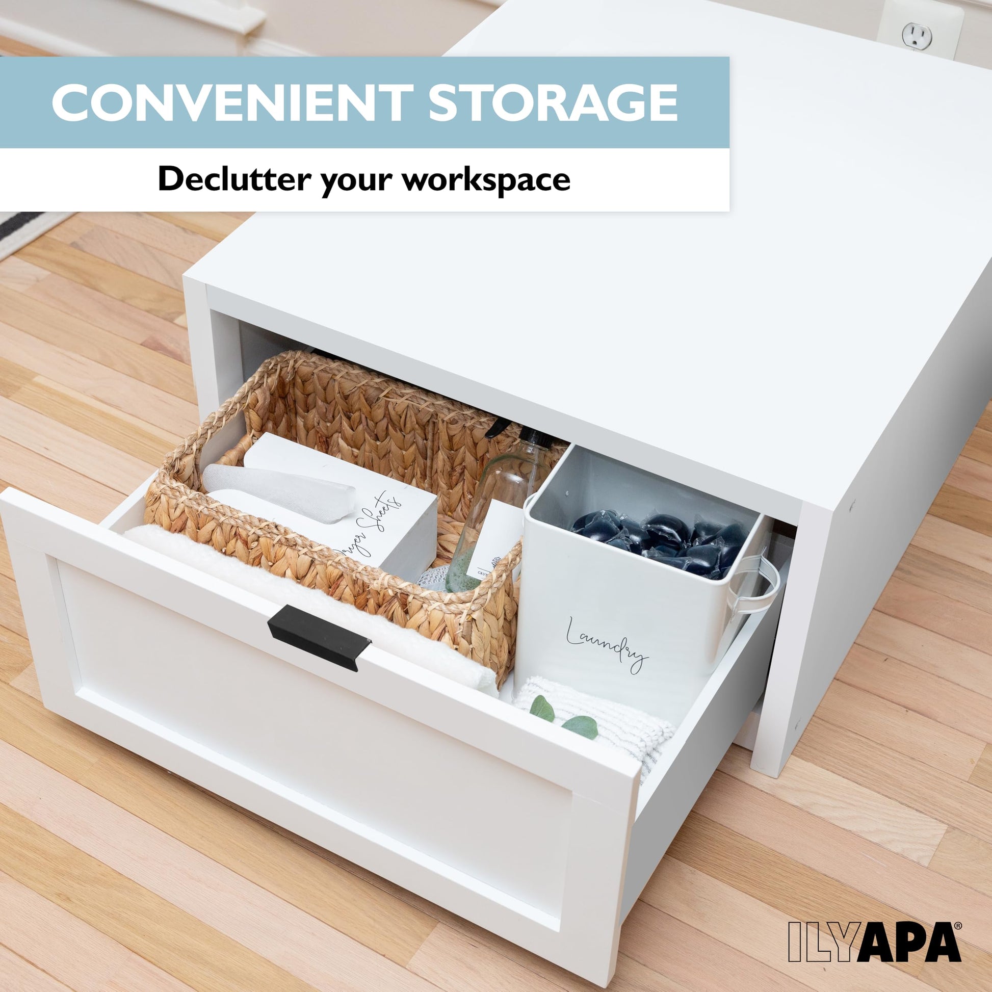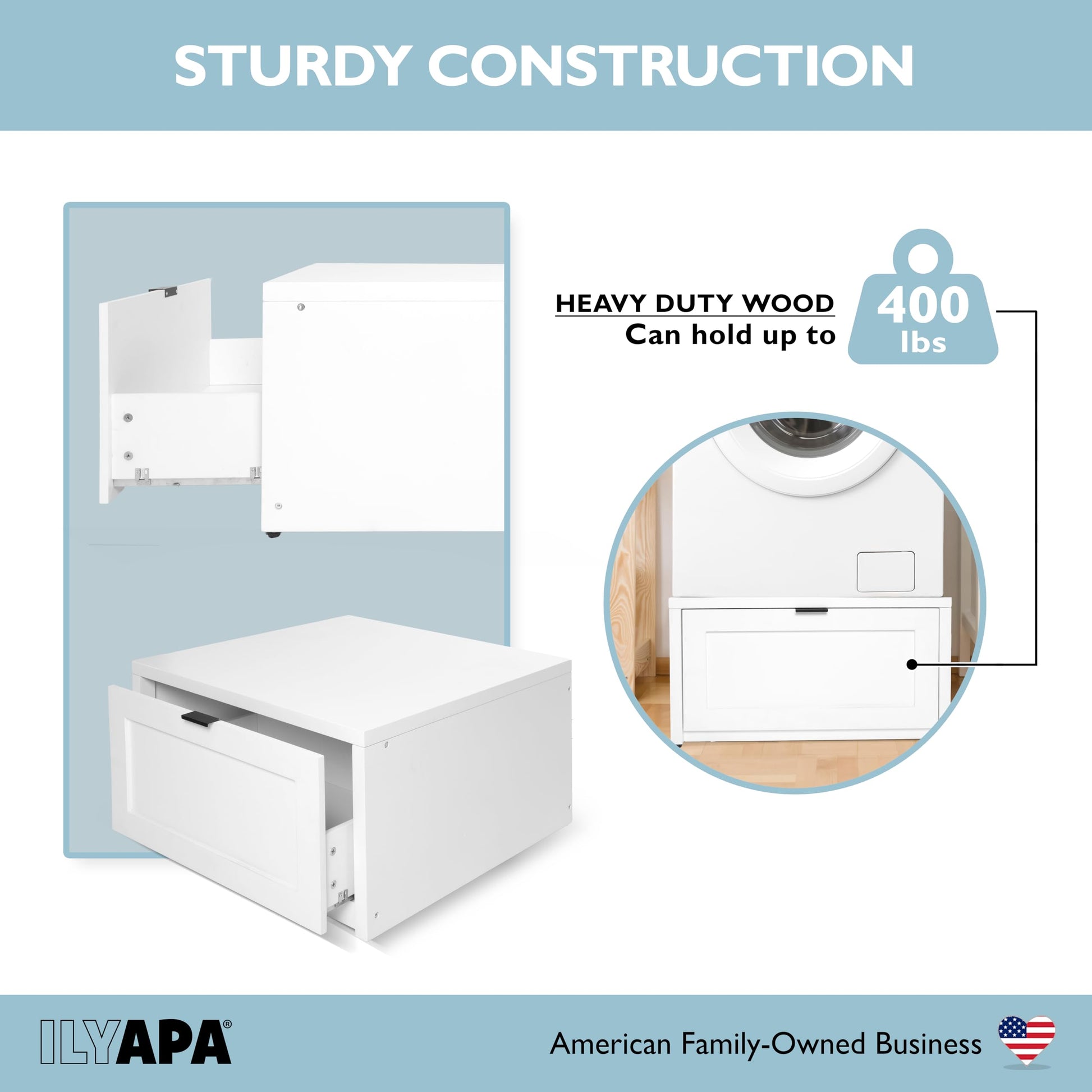 Ilyapa Washer and Dryer Stand - Universal Wooden Laundry Pedestal with Drawer - Compatible with Samsung, LG, GE, Maytag - 28x28x16 in. Patent Pending