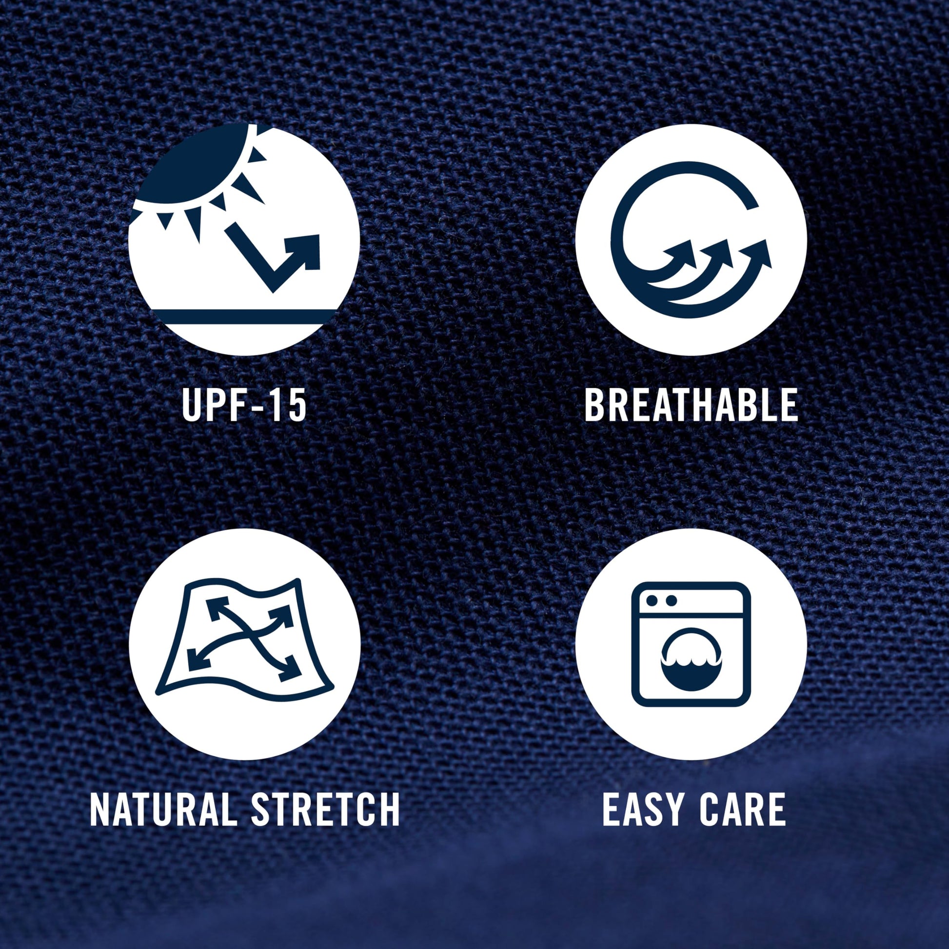 - SUN PROTECTION: Our classic golf polos for men offer an innovative UV-15 finish for ultimate sun protection whether you’re on the course or the court. This collared golf shirt is easy to wear and is machine washable for easy care