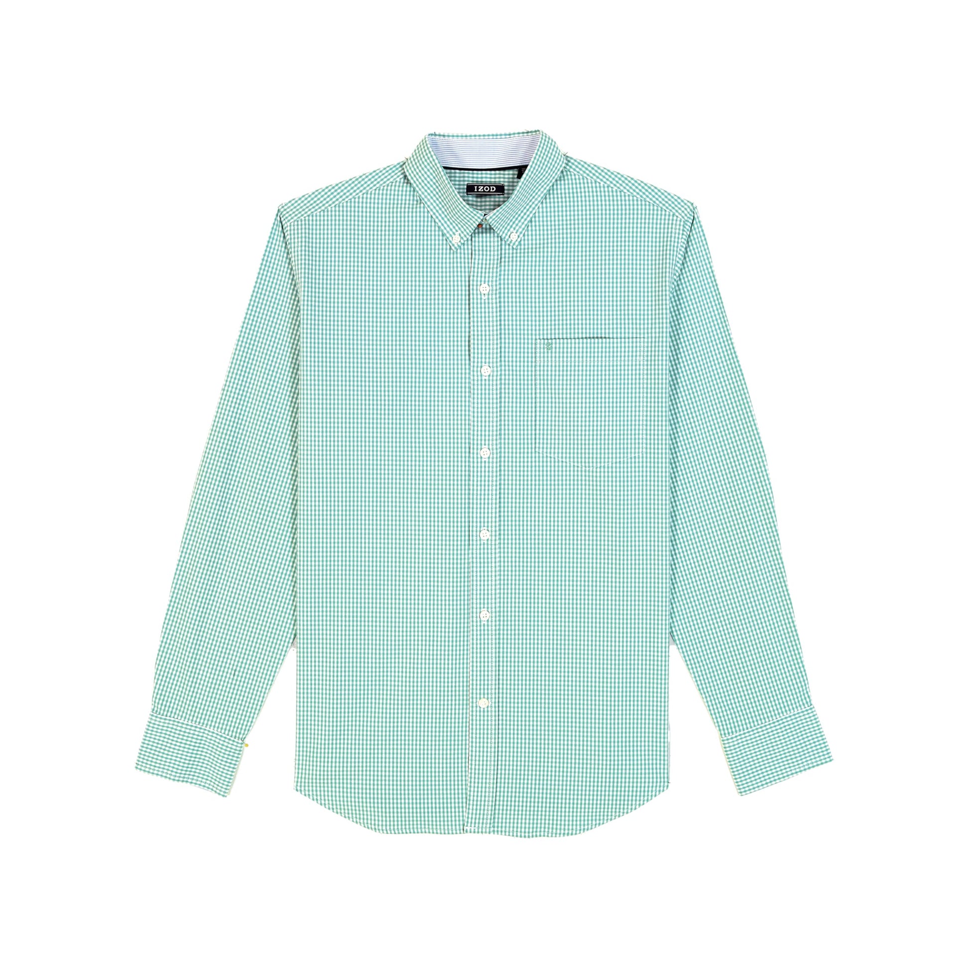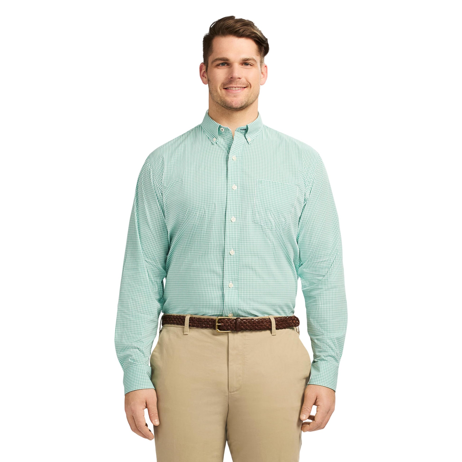 IZOD Men's Big and Tall Performance Comfort Long Sleeve Gingham Button Down Shirt, Beryl Green