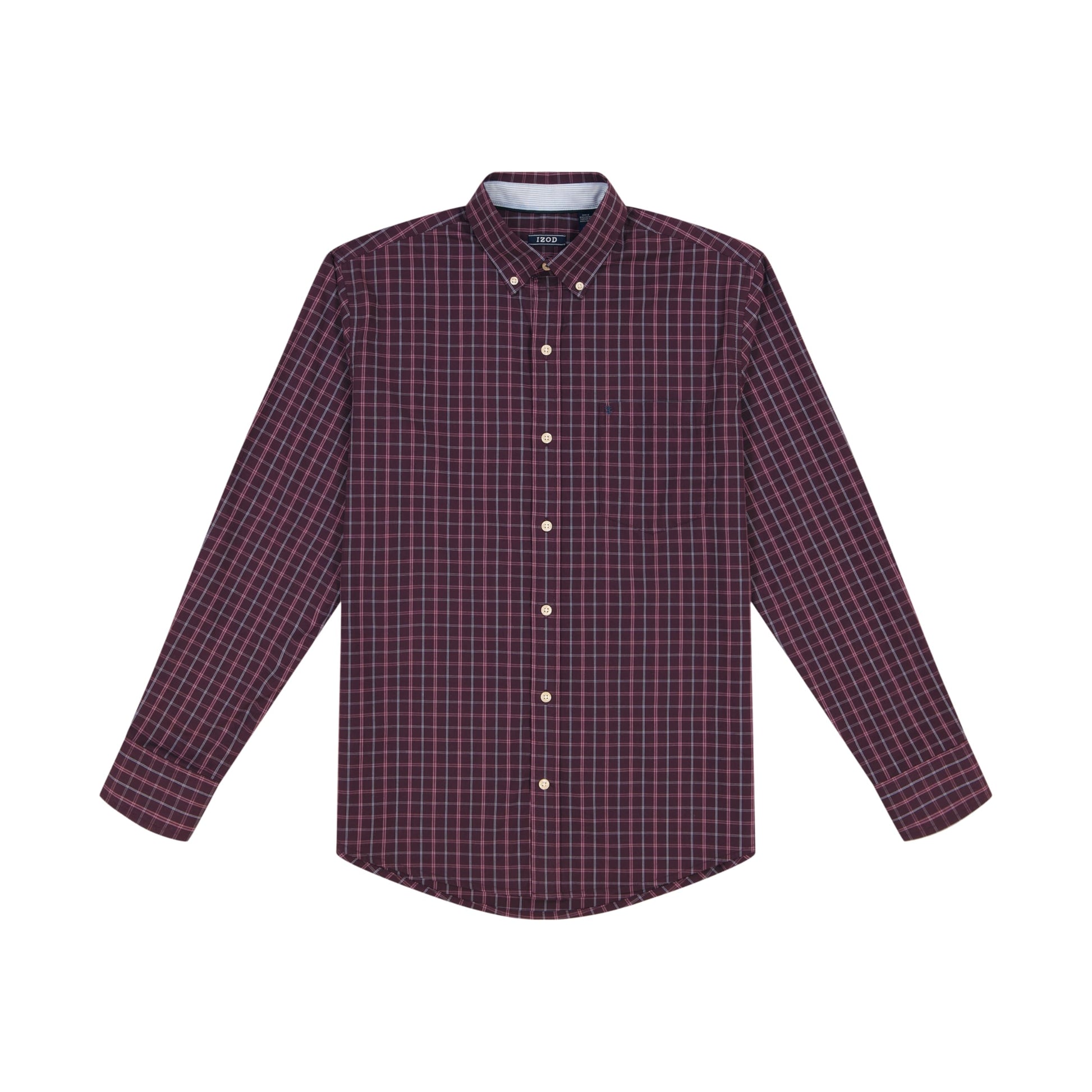 IZOD Men's Big and Tall Performance Comfort Long Sleeve Gingham Button Down Shirt, Plum Perfect Checkered