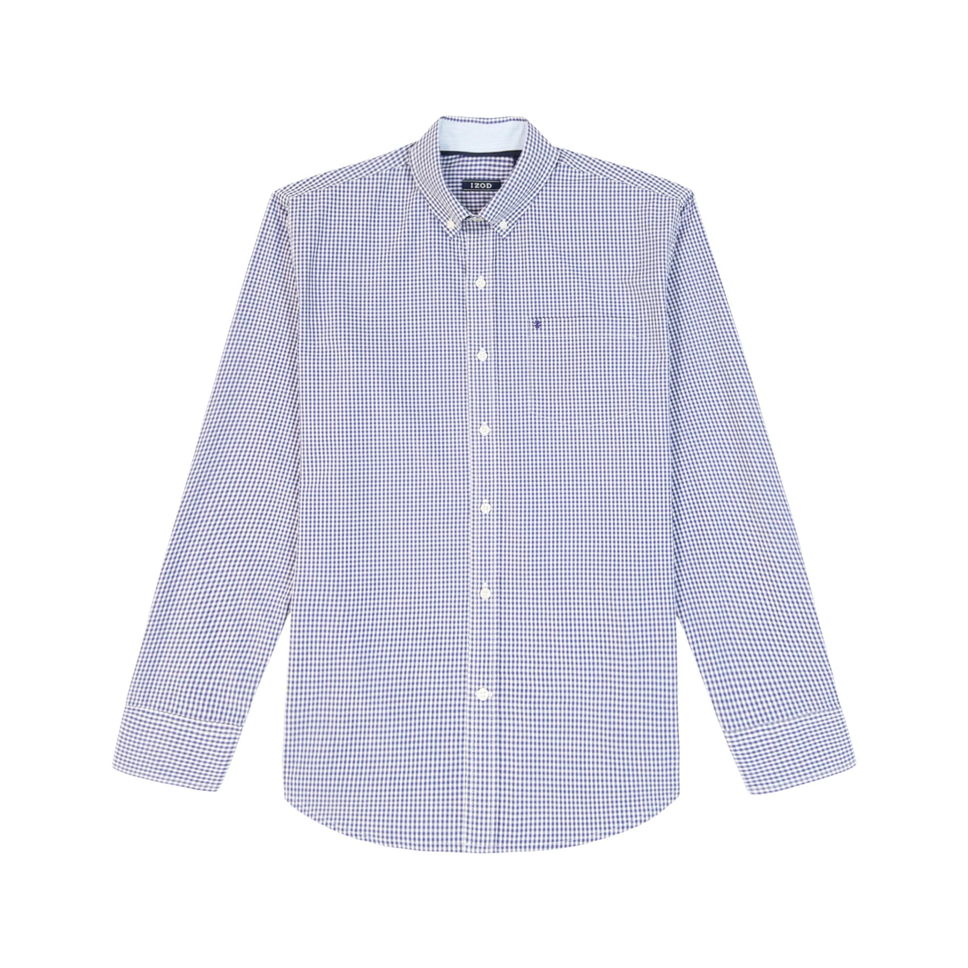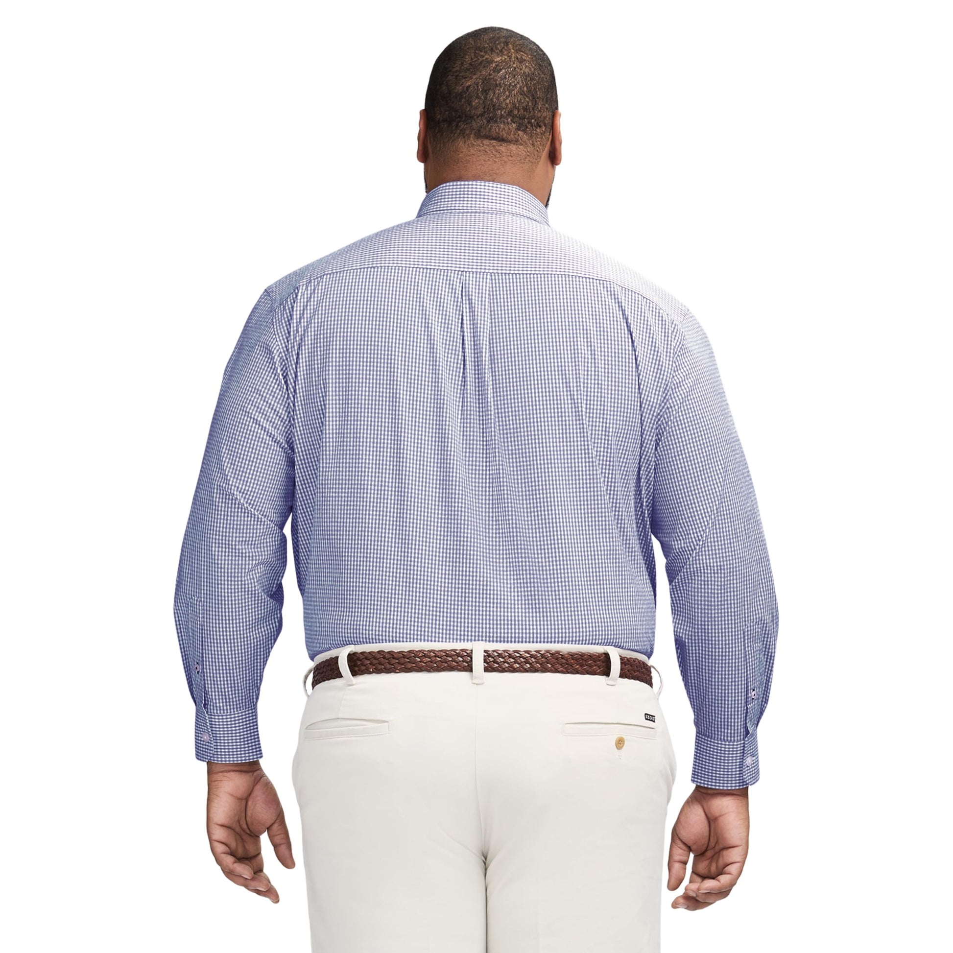 IZOD Men's Big and Tall Performance Comfort Long Sleeve Gingham Button Down Shirt, Skipper Blue Check