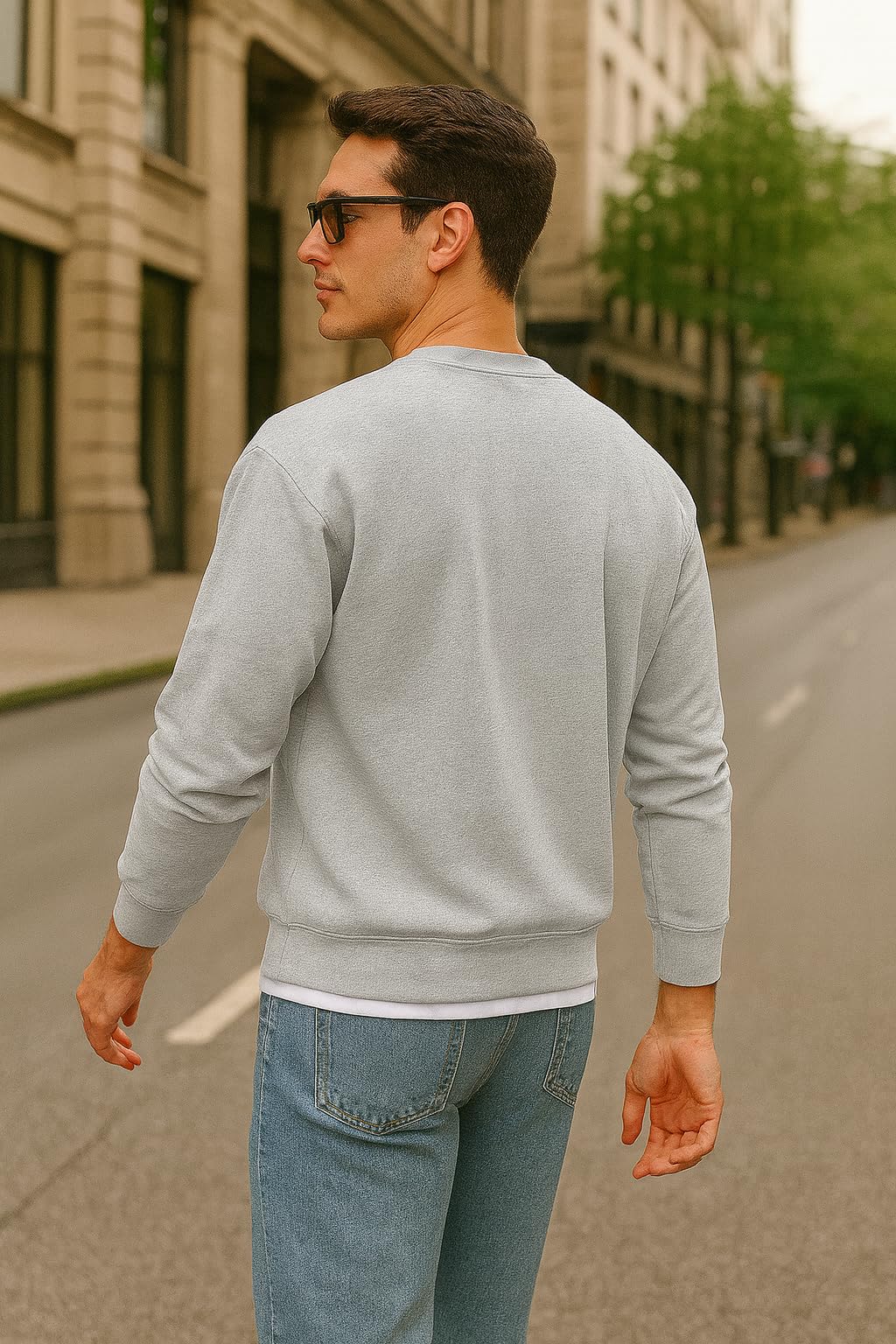JustBlanks Fleece Sweatshirt for Men Tall Men’s Sweatshirt Crewneck Sweatshirt Relaxed-Fit Pullover Sweatshirt - Ash - XLT