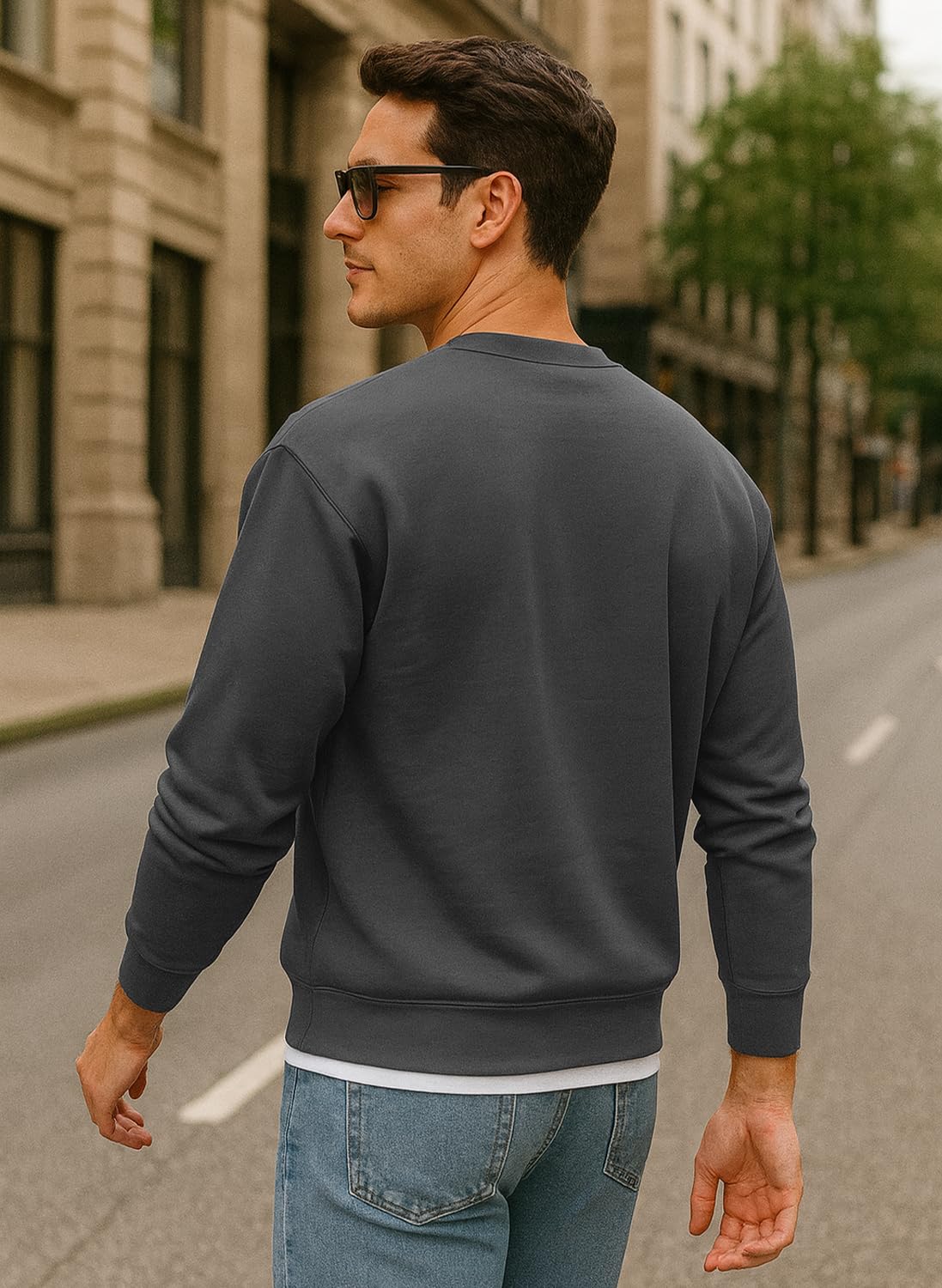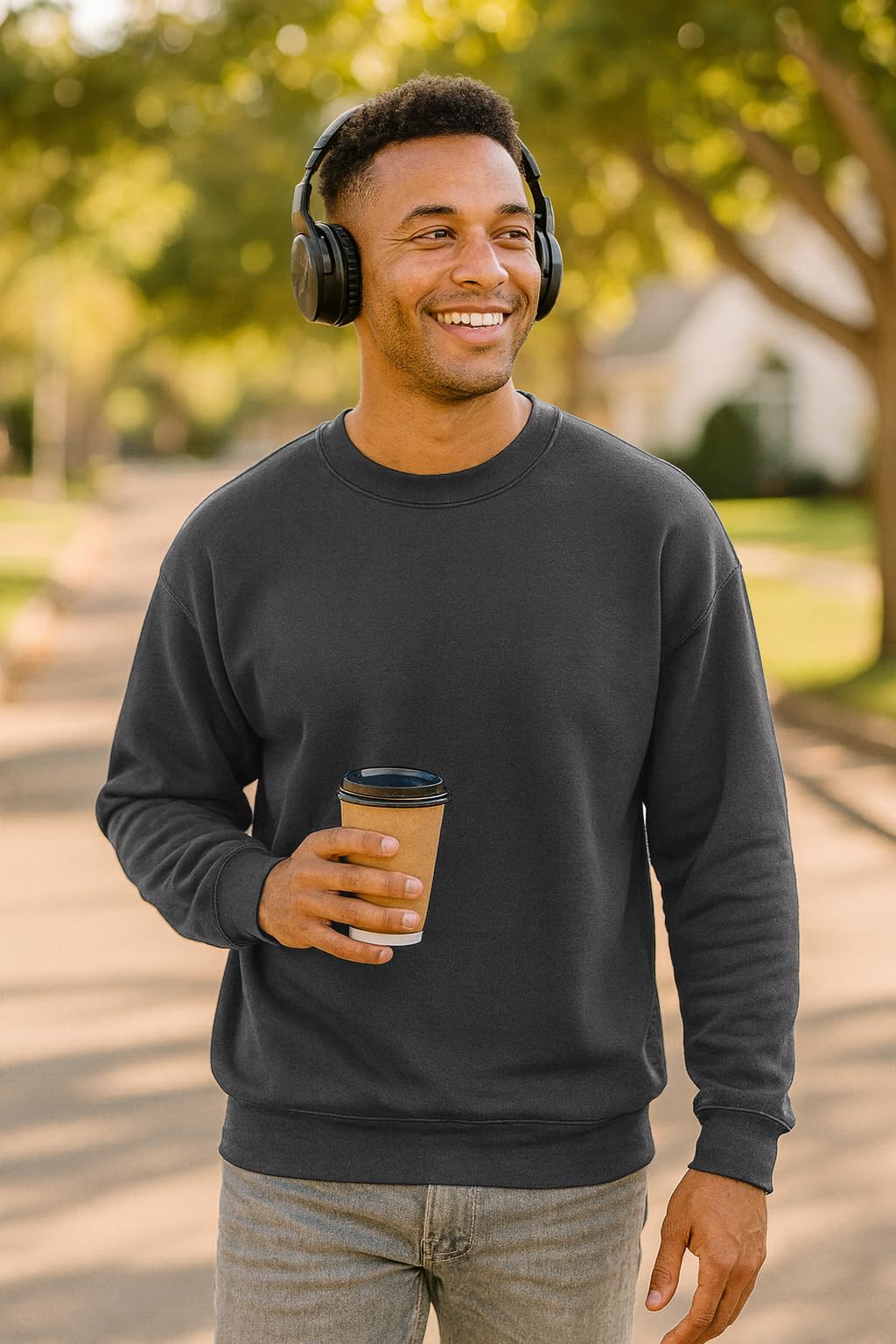 JustBlanks Fleece Sweatshirt for Men Tall Men’s Sweatshirt Crewneck Sweatshirt Relaxed-Fit Pullover Sweatshirt - Charcoal - LT