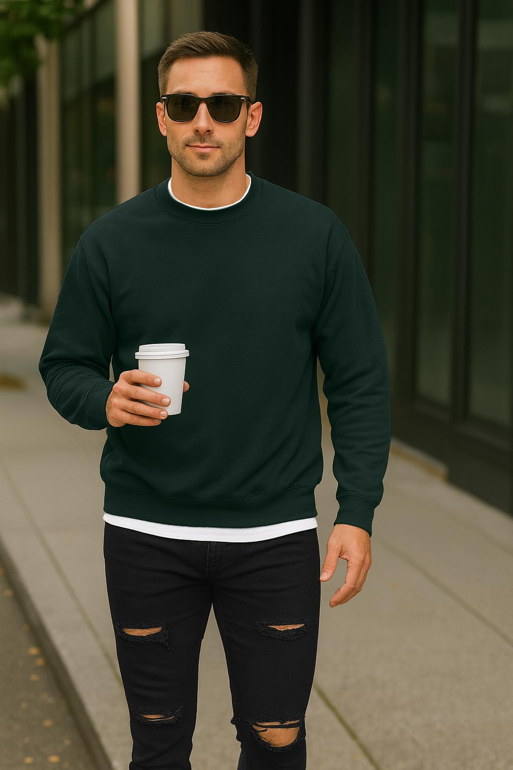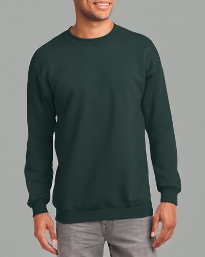 JustBlanks Fleece Sweatshirt for Men Tall Men’s Sweatshirt Crewneck Sweatshirt Relaxed-Fit Pullover Sweatshirt - Dark Green - XLT