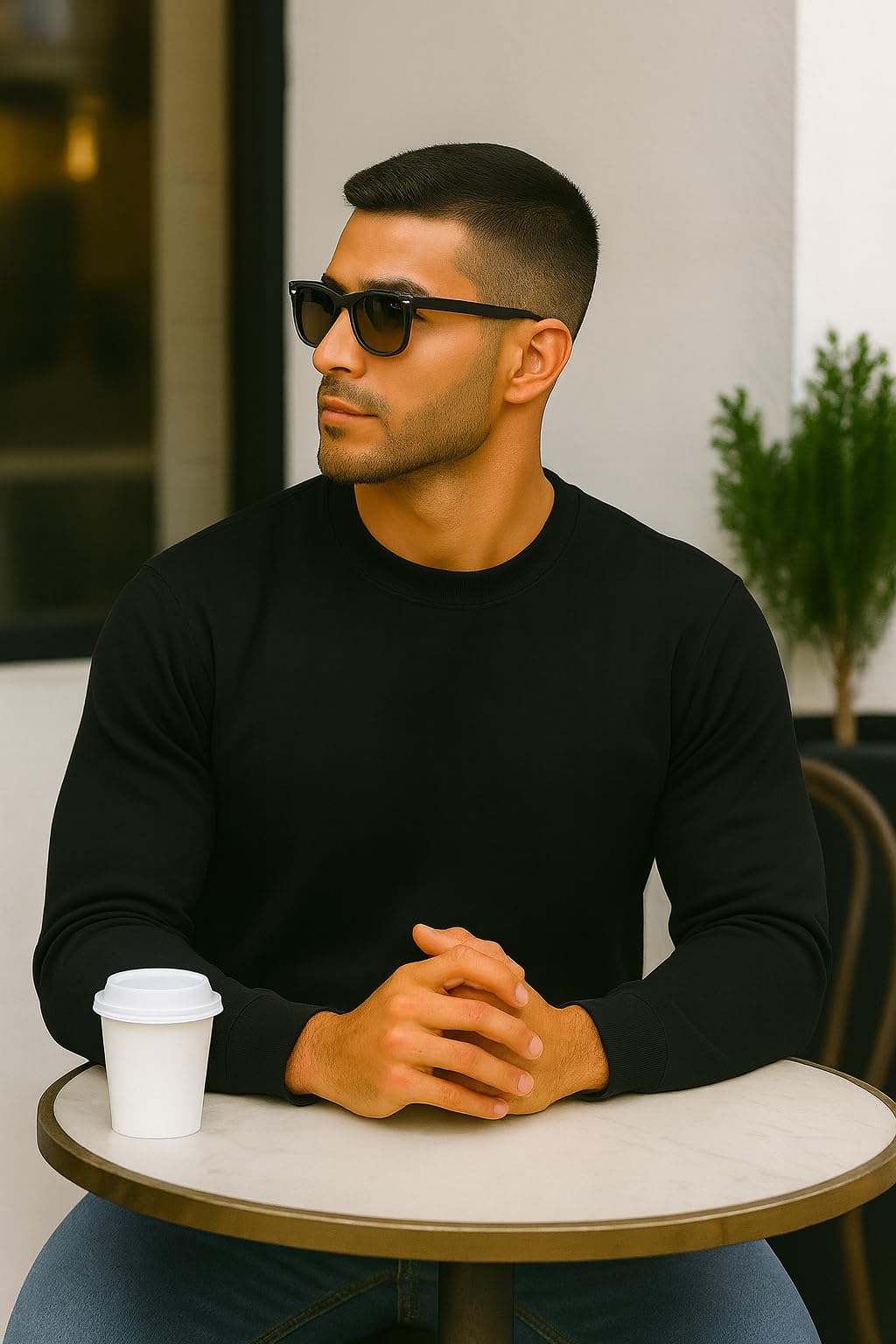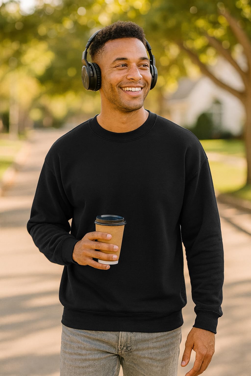 JustBlanks Fleece Sweatshirt for Men Tall Men’s Sweatshirt Crewneck Sweatshirt Relaxed-Fit Pullover Sweatshirt - Jet Black - LT