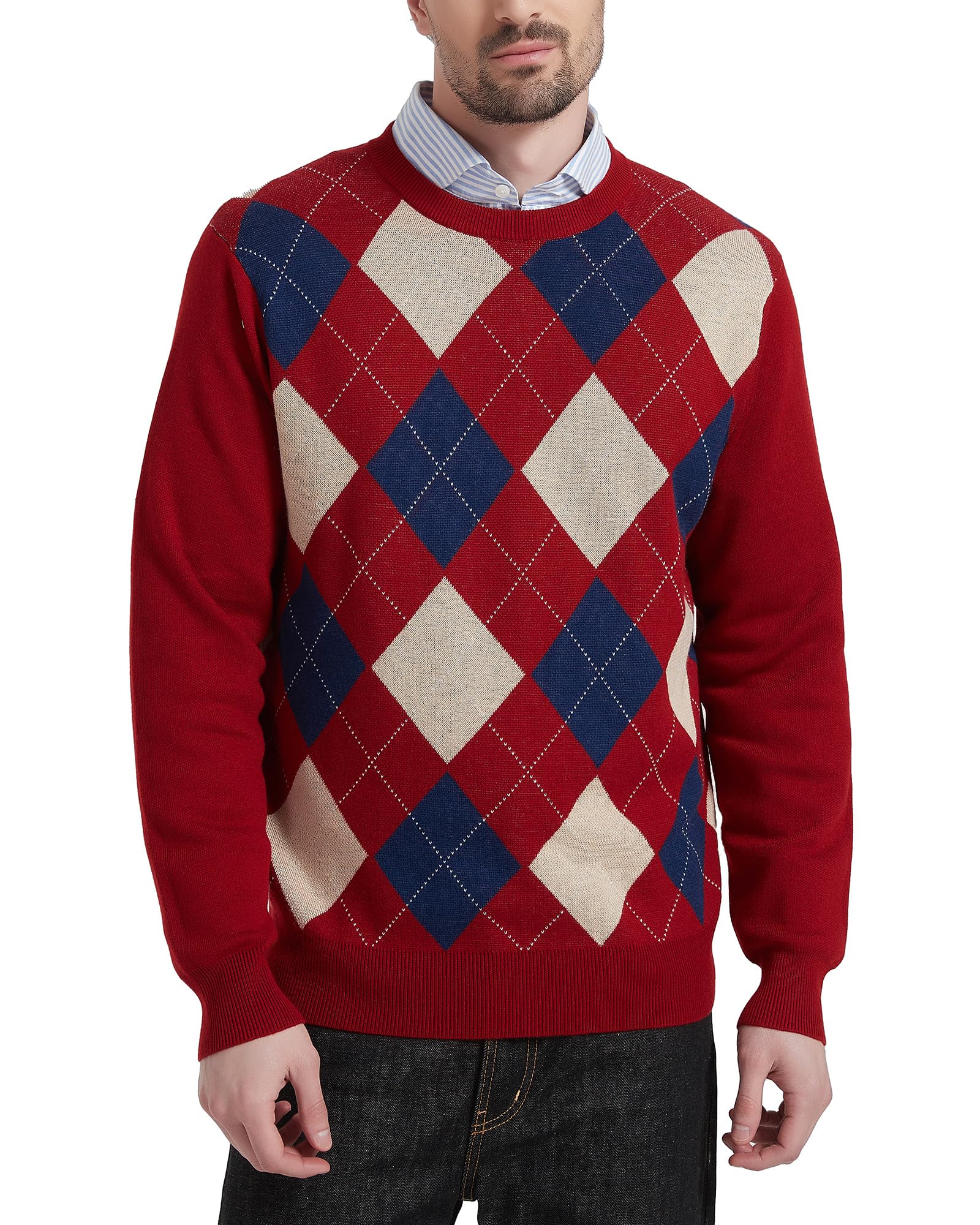 - Stylish Argyle Design: The men's crew neck sweater features a classic argyle pattern, bringing a vintage style and smart appearance to your winter wardrobe. Great birthday, holiday presents for husband, families, friends.