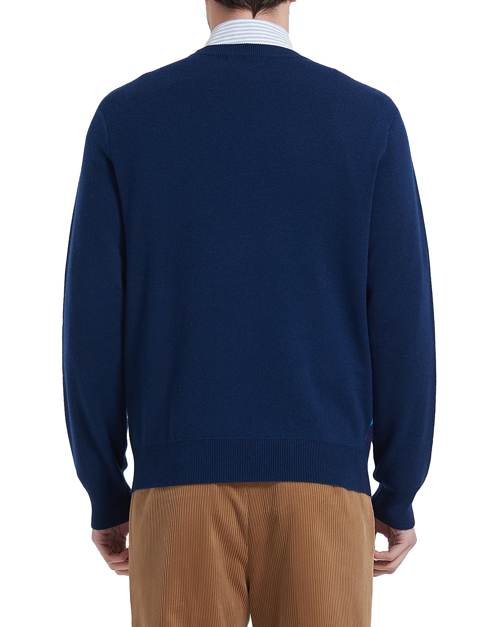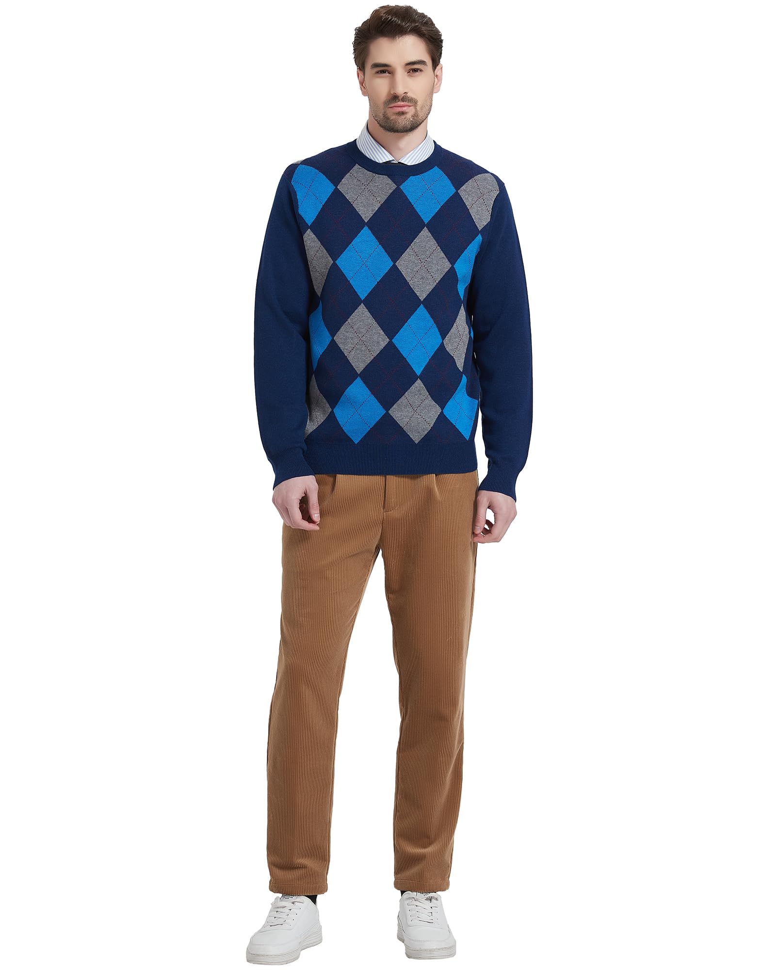 Kallspin Men's Wool Blend Crewneck Sweater Argyle Long Sleeve Pullover Sweater for Casual Or Dressy Wear(Navy Blue,3XL-Tall)